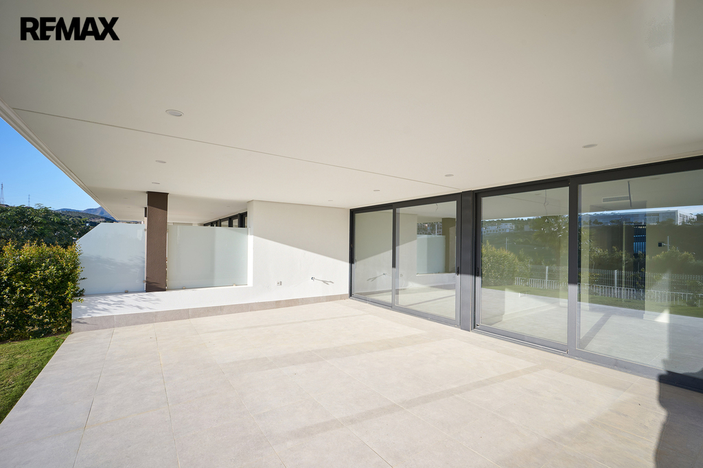 Apartmán je situován v přízemí a nabízí velmi dobře řešenou dispozici s prostorným obývacím pokojem propojeným s moderní kuchyní, třemi samostatnými ložnicemi, dvěma koupelnami, vstupní halou, chodbou a technickou místností. Hlavní obytný prostor plynule navazuje na rozsáhlou krytou terasu o výměře 40 m² a navazující soukromou předzahrádku 75 m2 k výhradnímu užívání, které společně vytvářejí ideální prostor pro venkovní posezení, relaxaci i celoroční užívání středomořského klimatu. Velkoformátové posuvné dveře zajišťují přirozené propojení interiéru s exteriérem a dodávají bytu vzdušný a otevřený charakter. Součástí prodeje je kryté parkovací stání v suterénu domu.