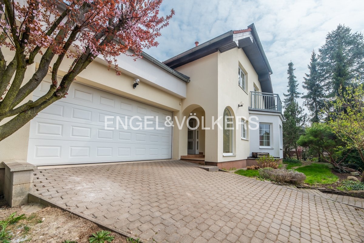 Dům disponuje dvěma balkony a prostornou venkovní terasou orientovanou do zahrady. Součástí vybavení je centrální vysavač, kompletně vybavená kuchyně, vnitřní vyhřívaný bazén, sauna a velká dvojgaráž.