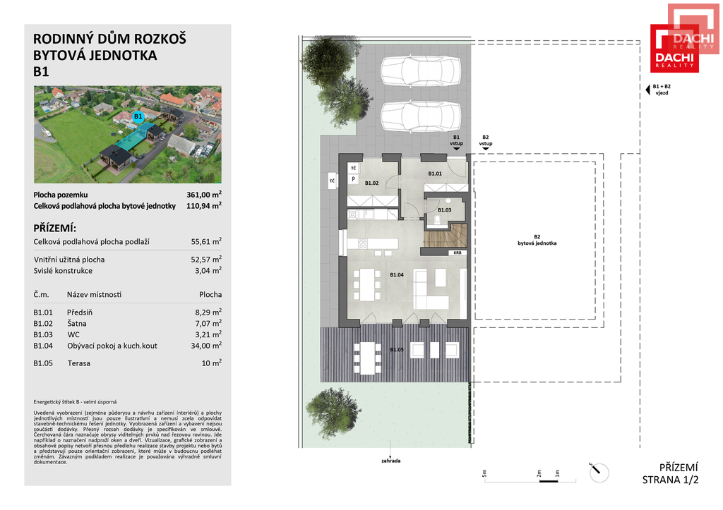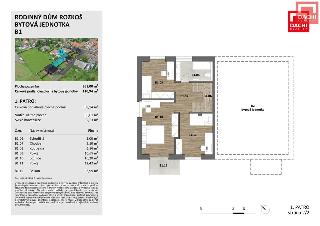 - Energetická náročnost budovy: B - Velmi úsporná