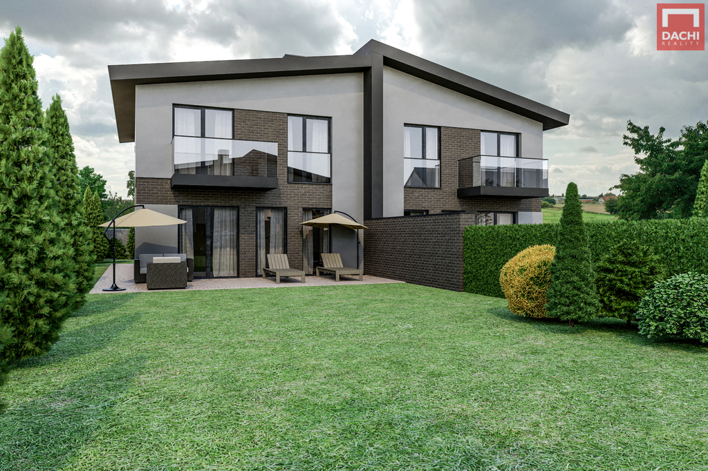 Součástí jednotky je vlastní pozemek o výměře 361 m² se zahradou, která poskytuje dostatečný prostor pro relaxaci, rodinné aktivity i případné úpravy dle vašich představ. Dispoziční řešení je navrženo s důrazem na praktičnost. V přízemí se nachází otevřený obývací pokoj s kuchyňským koutem a přímým vstupem na terasu a zahradu, dále předsíň, šatna a samostatné WC. V patře je umístěna klidová zóna se třemi samostatnými pokoji, koupelnou a balkonem. Jednotka má vlastní vstup a samozřejmostí jsou parkovací stání přímo u domu.