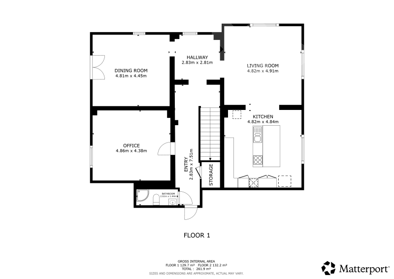 Přízemí - kuchyň na míru se spotřebiči, tři samostatné místnosti, hala, koupelna se sprchovým koutem a WC.