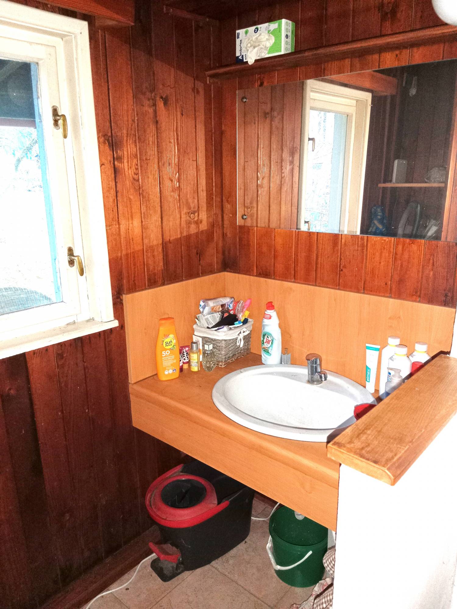 Na pozemku se nachází dvě kopané studny, voda je zavedena do objektu a ohřev zajišťuje průtokový ohřívač. WC je aktuálně řešeno jako samostatné chemické. Odpadní vody lze řešit jímkou, případně domácí čističkou odpadních vod s odtokem do potoka, který lemuje spodní hranici pozemku.
