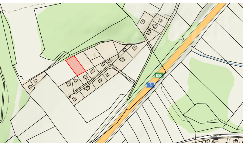 Pozemek má příjezdovou lesní cestu.