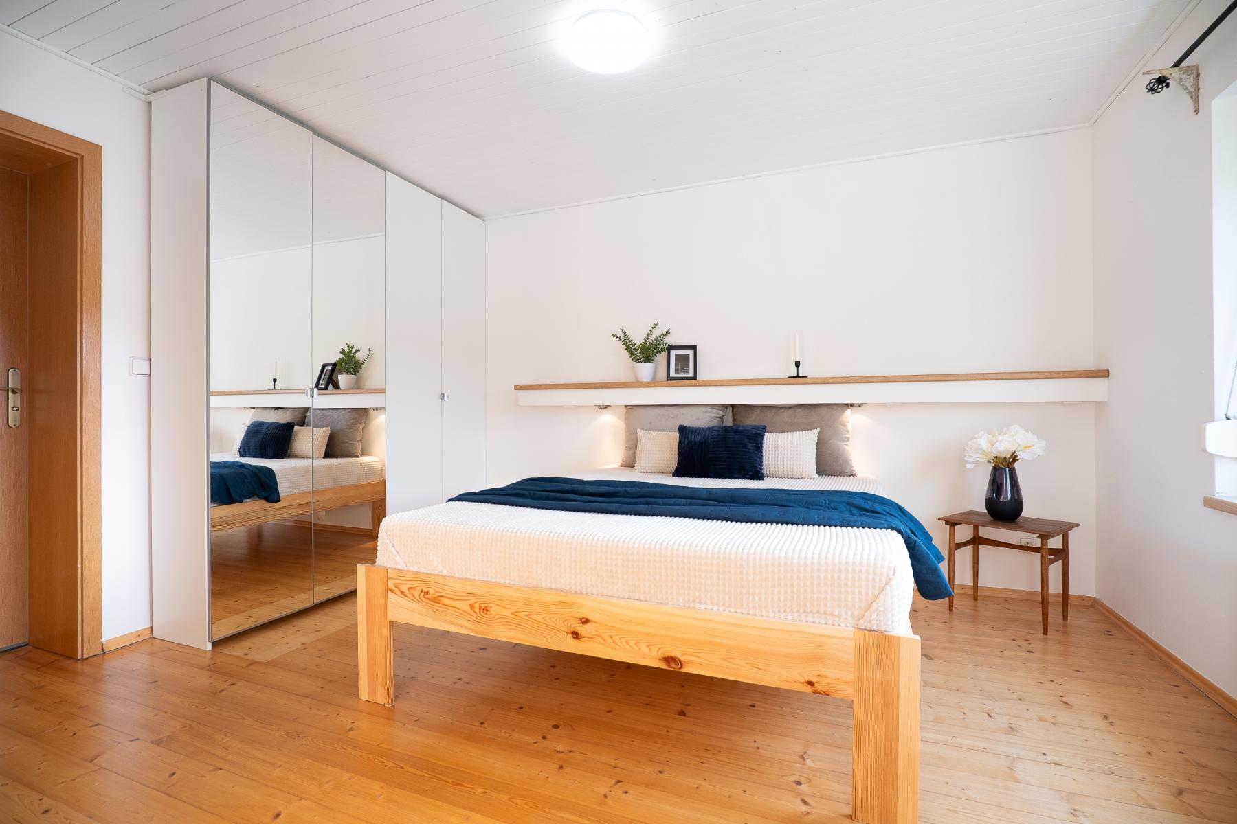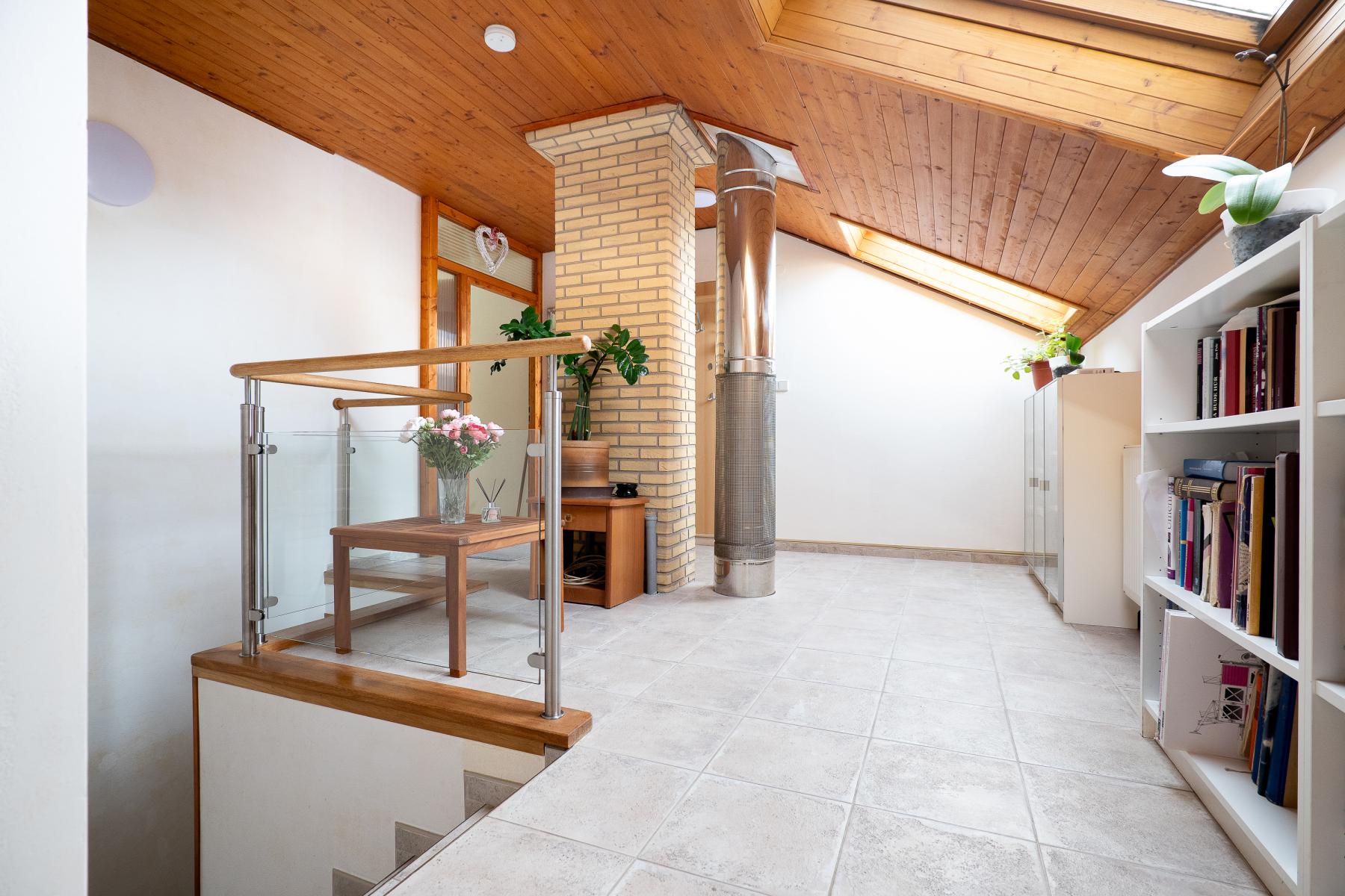 Ve druhém podlaží se nachází kuchyně s obývacím pokojem, několik dalších samostatných pokojů, koupelny a místnosti využitelné jako ložnice, dětské pokoje, pracovny či pokoje pro hosty. Díky uspořádání podlaží lze dům velmi dobře rozdělit na více samostatně fungujících částí, což zvyšuje jeho flexibilitu a využitelnost.