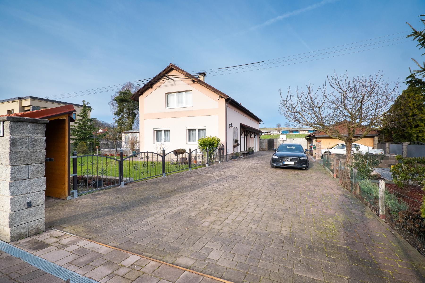 Parkování je zajištěno garáží pro jeden vůz, krytým přístřeškem pro dvě auta a dalšími parkovacími místy přímo na pozemku.