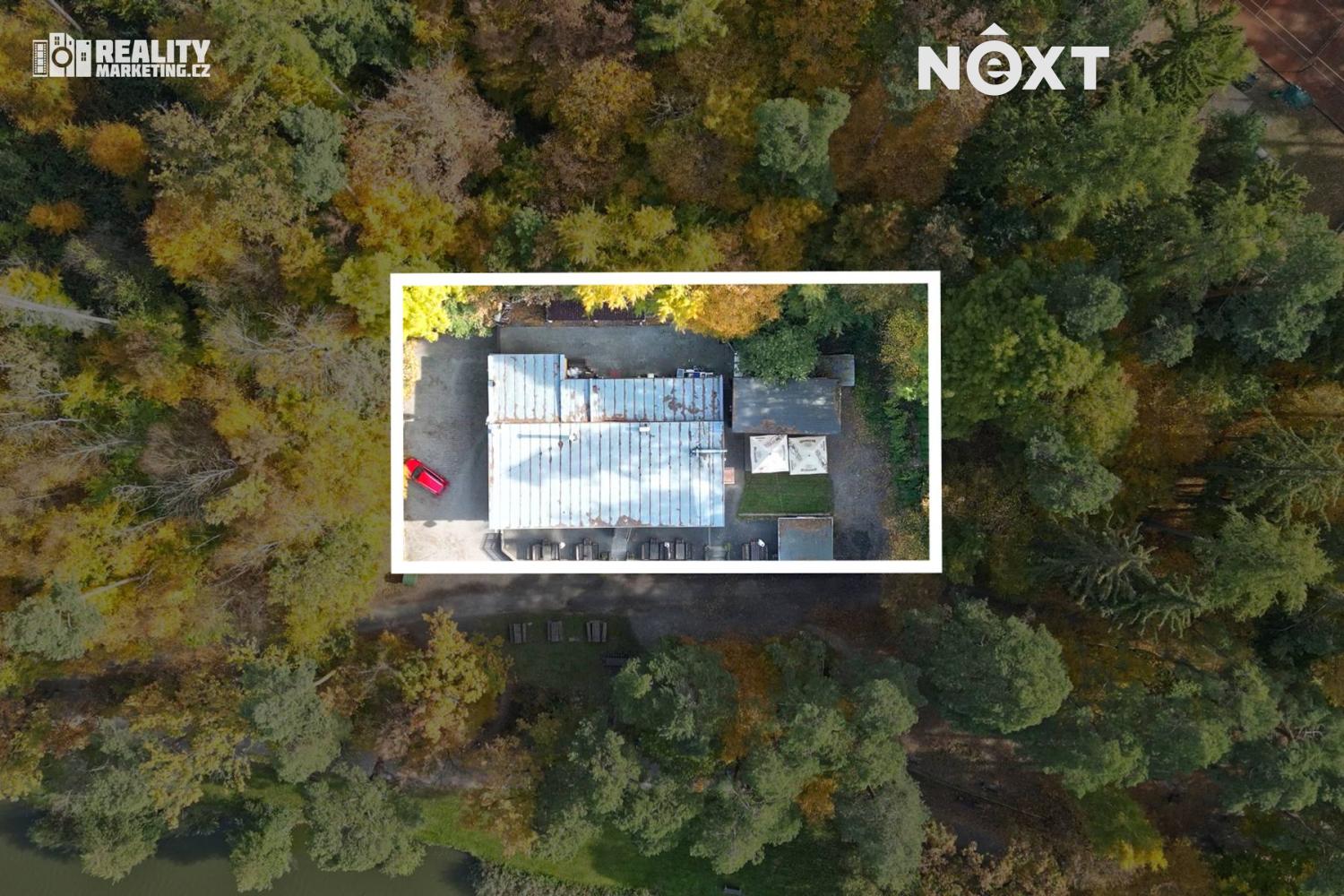 Na pozemku se dále nachází plechová garáž, technická místnost, několik zastřešených dřevníků a s krásným výhledem na rybník také venkovní altán – přístřešek pro grilování.