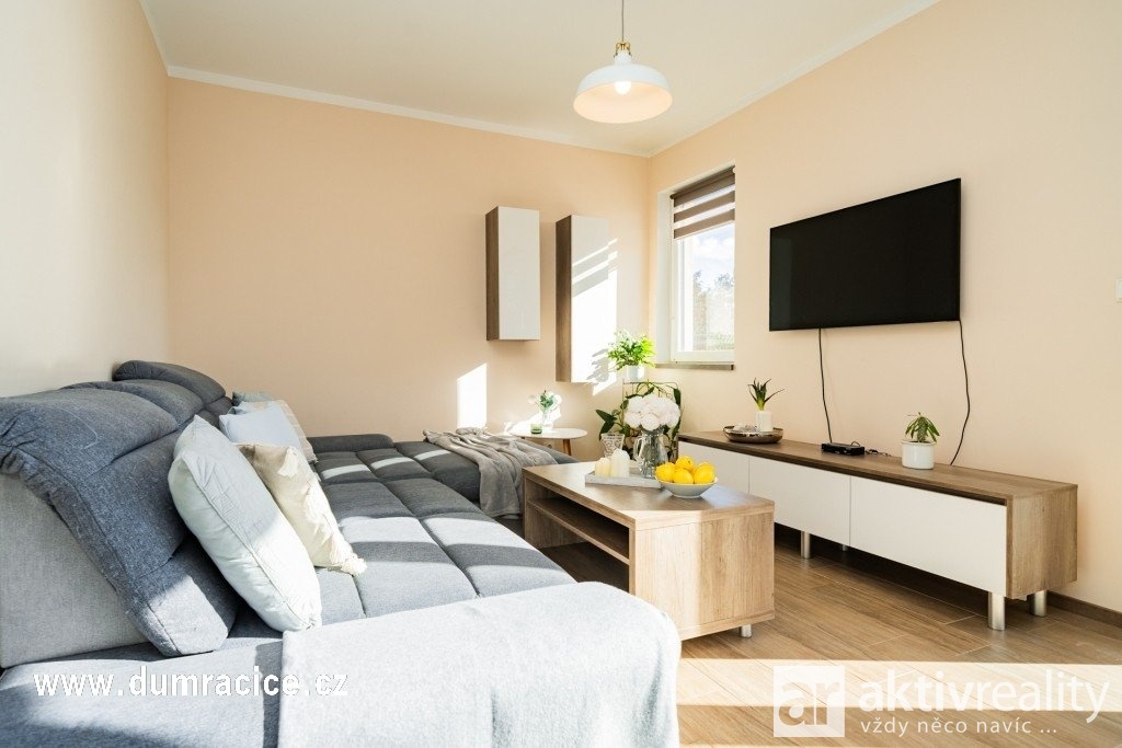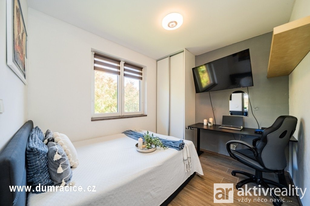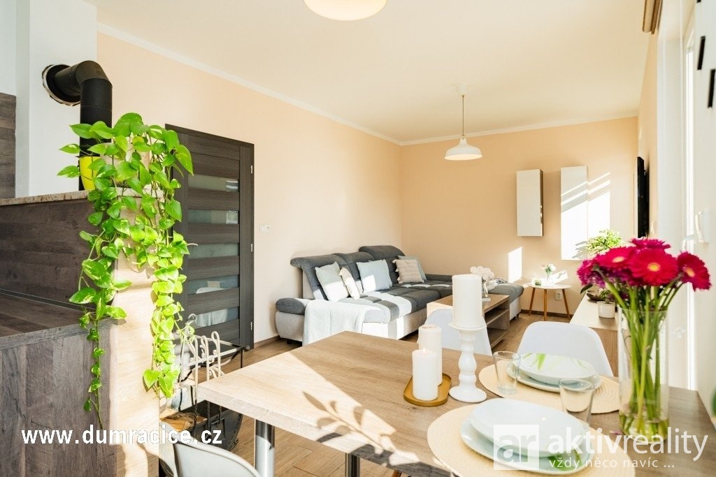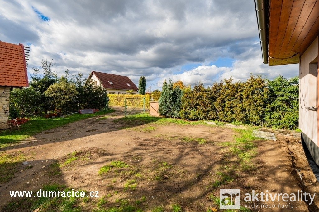 Hledáte moderní nízkonákladové bydlení a k tomu „druhý prostor“ navíc? Nabízíme zděný bungalov 4+kk (2020) na pozemku 999 m² v obci Račice u Štětí. Součástí prodeje je také samostatný zateplený mobilheim cca 50 m² – ideální pro hosty, pracovnu, zázemí pro rodinu nebo případně pronájem.
