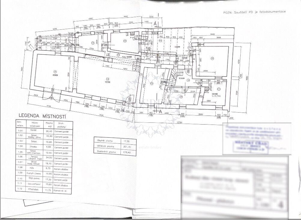 Celková obyt. pl.: 28,20 m², užitná pl.: 201,7 m², zast. pl.: 278,4 m².