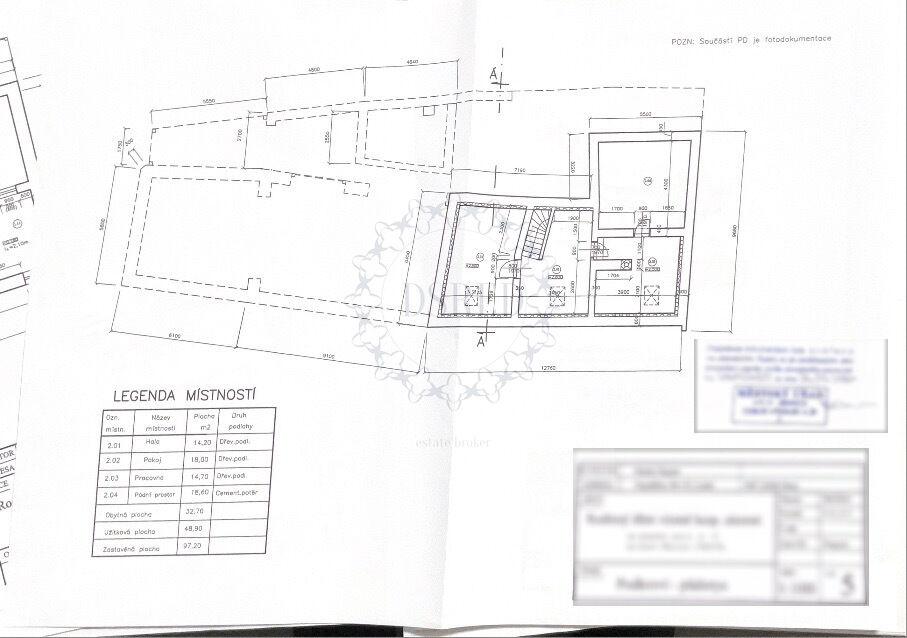 Celková obyt. pl.: 32,7 m², užitná plocha: 48,90 m², zast. pl.: 97,20 m².