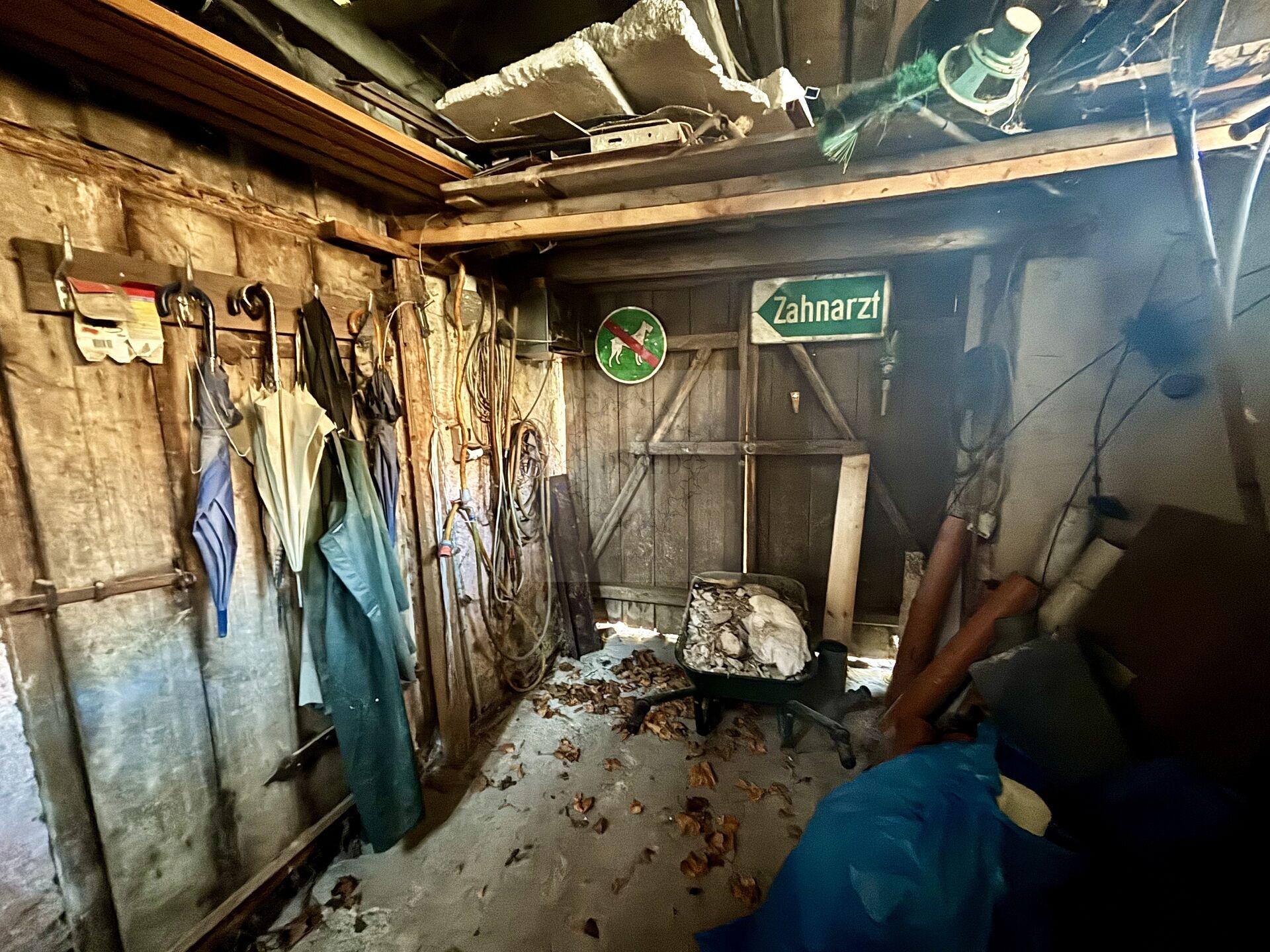 - 1. NP 12 místností: garáž (25,4 m²), sklad s dílnou (45,9 m²), sklad (10,9 m²), chodba (4,5 m²), sklad pro zahr. mechanizaci (12,5 m²), terasa – dvorní trakt (24 m²), sklad pro nářadí (18,10 m²), hala (8,70 m²), kuchyně s jídelnou a obýv. pokojem (28,20 m²), koupelna s vanou a WC (10,80 m²).