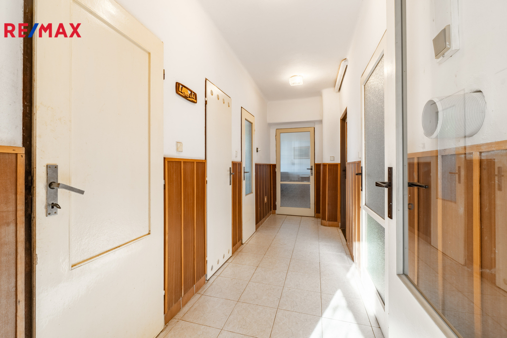 V přízemí se nachází kuchyň, obývací pokoj, dvě ložnice, koupelna, samostatná toaleta, chodba a zádveří. Část domu je podsklepena sklepem 12 m² se vstupem z chodby. Velkou výhodou je prostorná půda o rozloze více než 80 m² s trámovými krovy a taškovou střechou Bramac, která nabízí možnost vestavby a rozšíření obytných prostor.