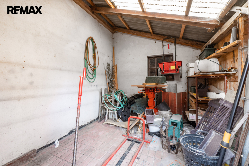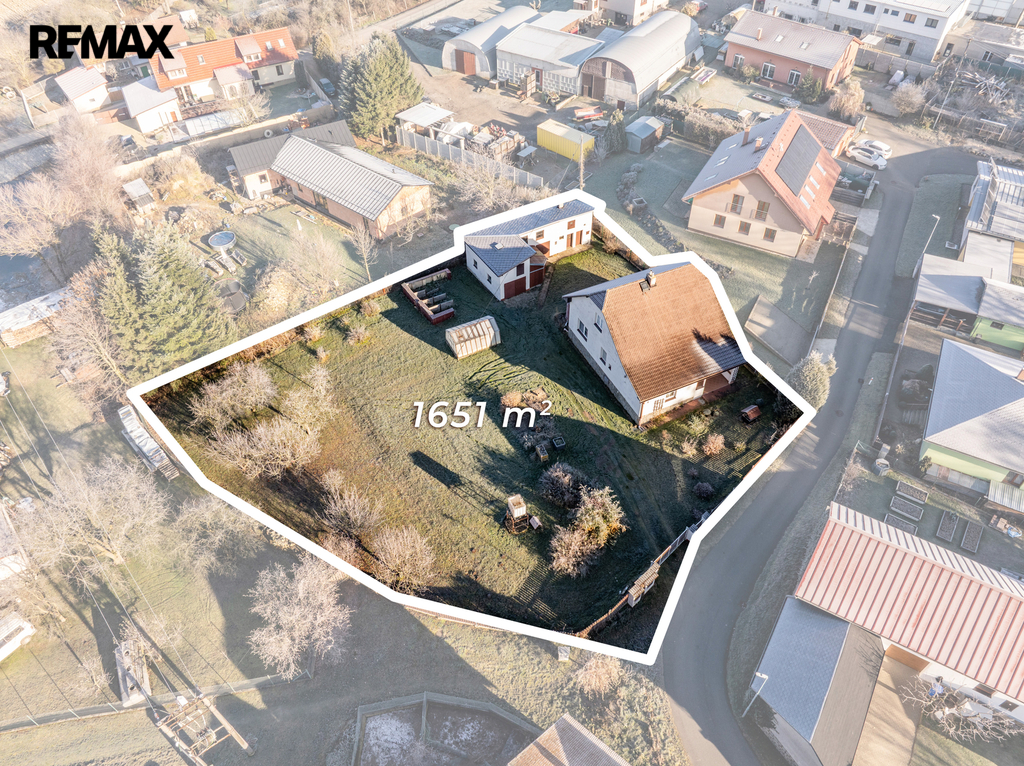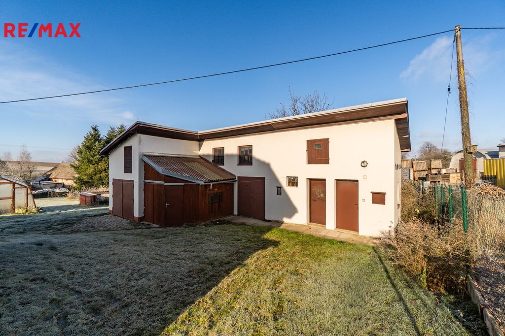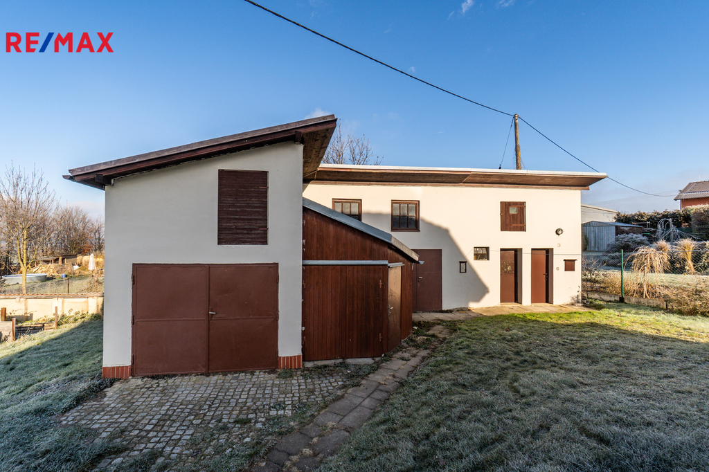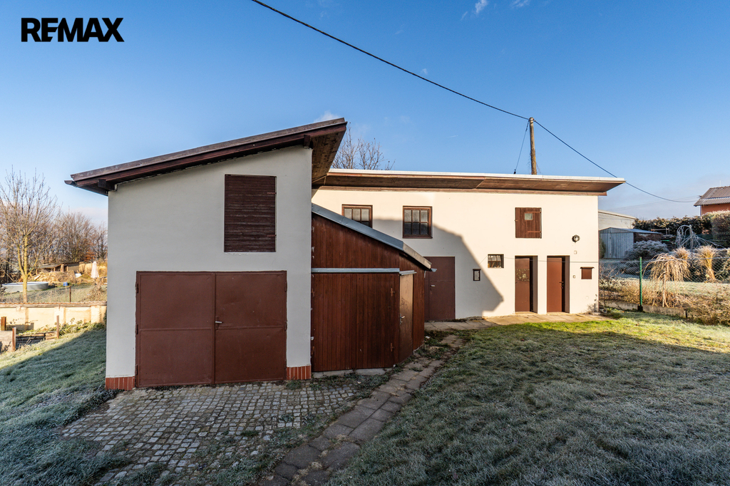 Součástí pozemku o celkové rozloze 1651 m² je také zděná stavba z 90. let o výměře 59 m², kde najdete garáž s dílnou a dobře řešené zázemí pro uložení nářadí, techniky a dalšího vybavení. Na zahradě se nachází také skleník pro nadšené zahradníky a několik vzrostlých ovocných stromů. Díky velikosti pozemku lze pozemek rozdělit na dvě stavební parcely.
