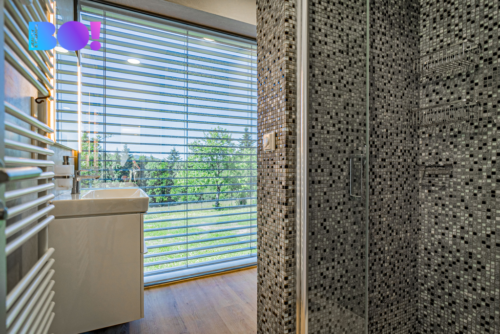 - hliníková okna s trojsklem – včetně velkoformátových francouzských oken v obytné části (hlavní portál s výhledem do krajiny má 8m na délku),