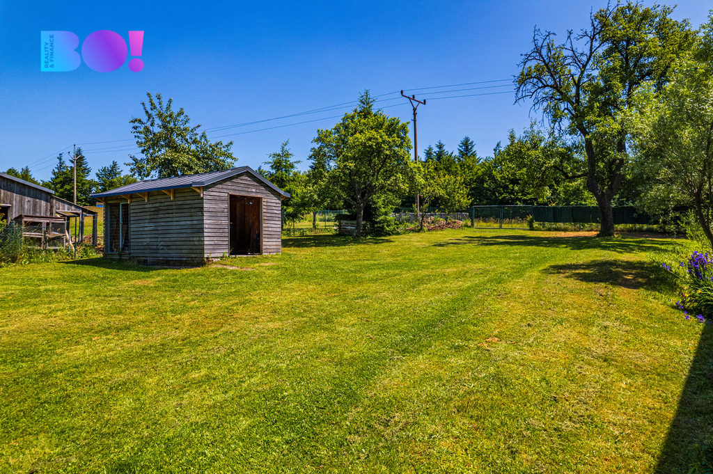 - velký pozemek, garáž, 2 zahradní domky, letní kuchyň, přístřešek pro tři auta