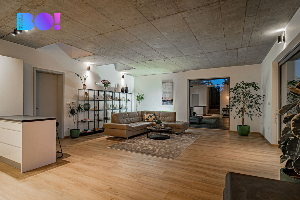 Dům nabízí velmi komfortní dispozici 6+kk – se zaměřením na otevřenost a propojení s exteriérem: