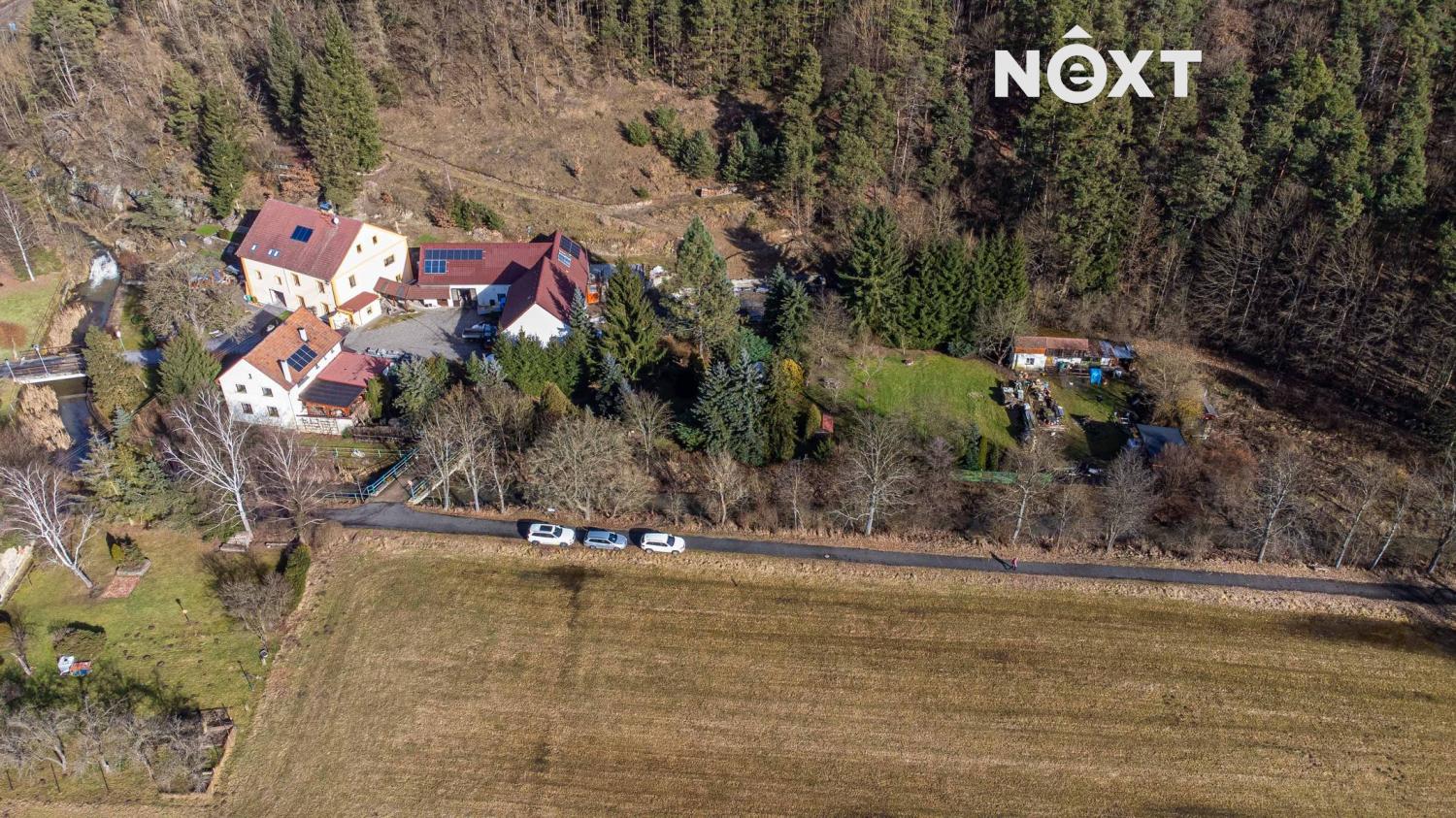 Součástí prodeje je také dalších 1 748 m² pozemků – část u příjezdové cesty a větší část tvořená lesním porostem nad zahradou. Celkově tak získáváte prostor, který dnes není samozřejmostí.