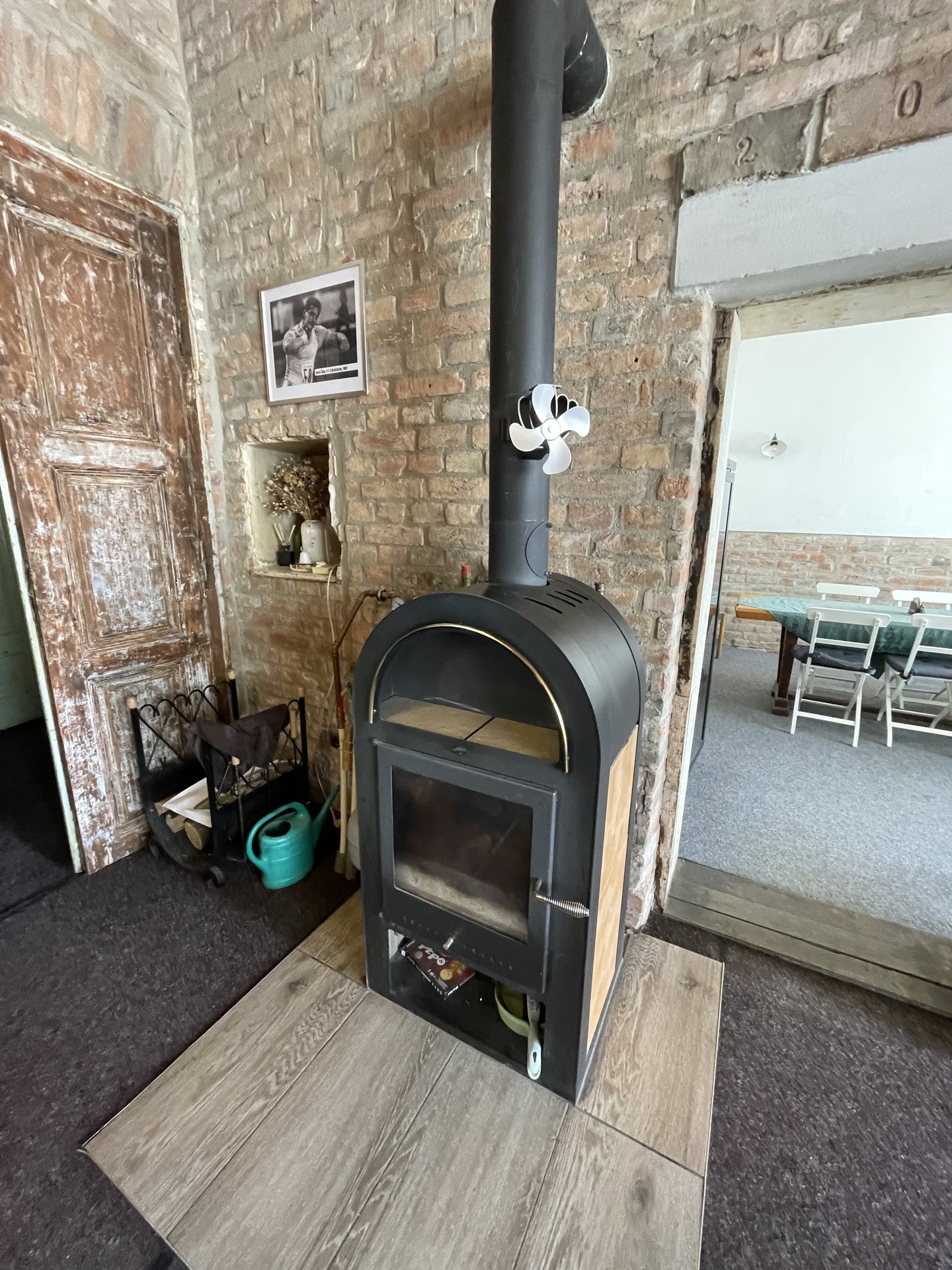 Je zde k dispozici duální topení - buď lze topit plynovým kotlem nebo krbovými kamny.