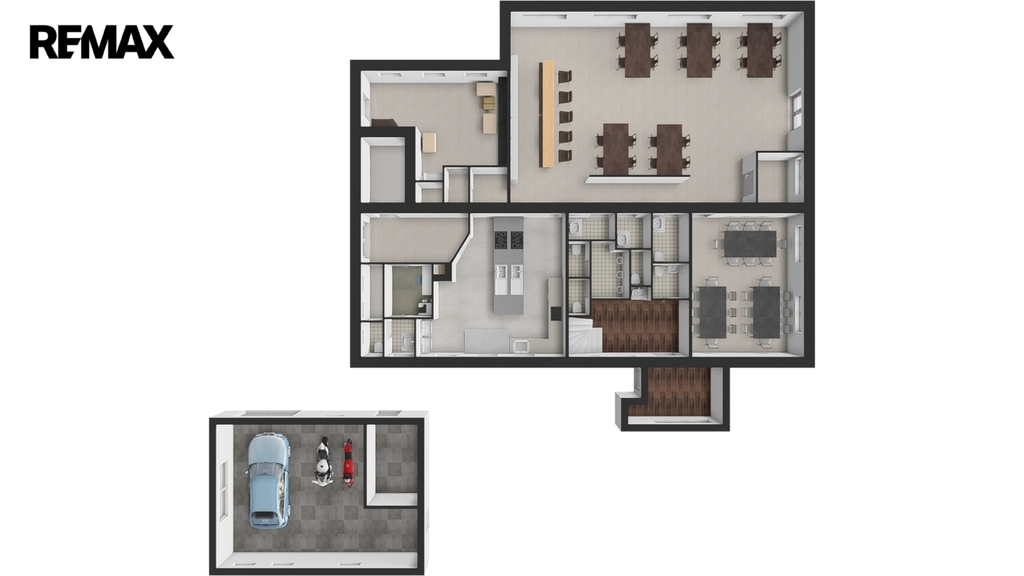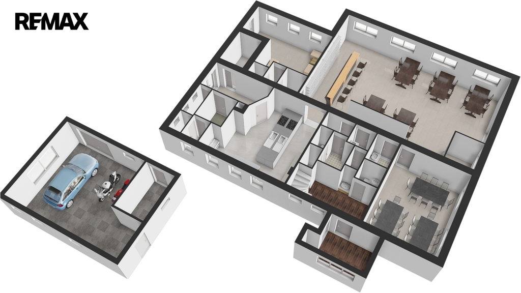 V přízemí se nachází bývalá restaurace, kterou majitelé provozovali řadu let. Provoz byl ukončen z osobních důvodů, ale prostor zůstal kompletně vybavený a ve velmi dobrém stavu. Díky samostatnému vstupu, kuchyňskému zázemí a sociálnímu zařízení lze na podnikání snadno navázat, případně prostor upravit pro jiný účel – například kavárnu, menší penzion, firemní sídlo nebo showroom.