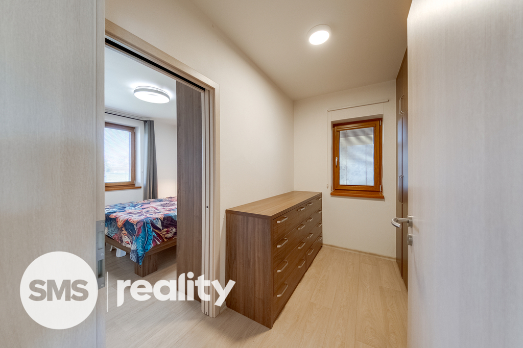 Dům je částečně vybaven. Vnitřní dispozice zahrnuje obývací pokoj s krbem, který navozuje příjemnou atmosféru. Vnitřní součástí je také infra sauna. Nemovitost disponuje dvěma koupelnami - jednou se sprchou a druhou s vanou a WC, navíc je ještě jedno samostatné WC.