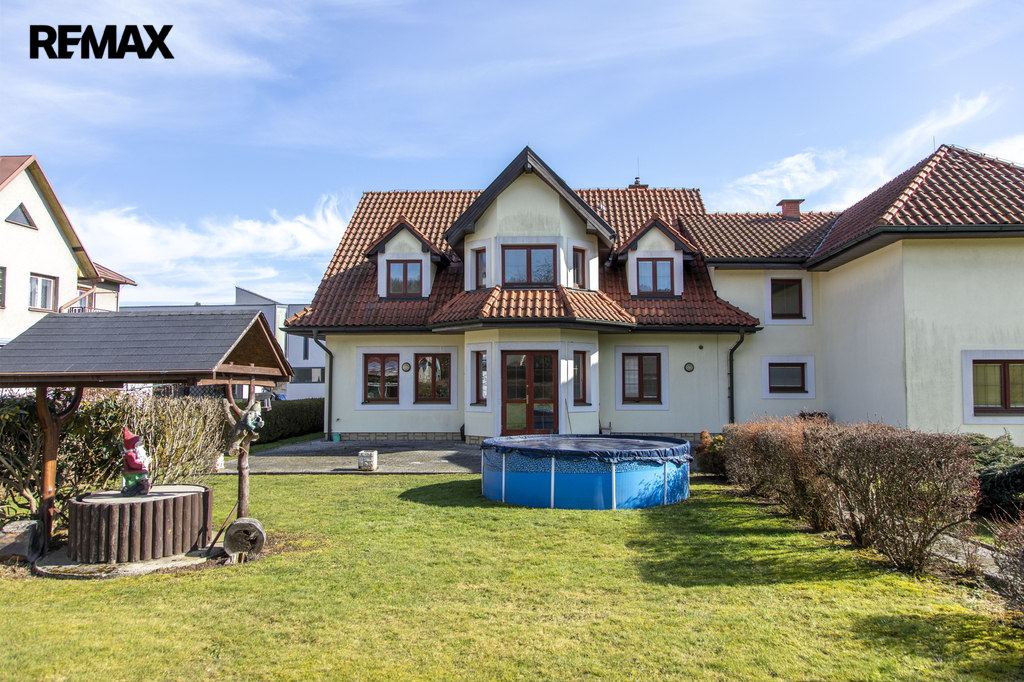Dům obklopuje rovinatý pozemek o výměře 1.973m² a jeho součástí je terasa se zámkovou dlažbou, altán s posezením a zahradním krbem, bazén a již zmíněná studna.