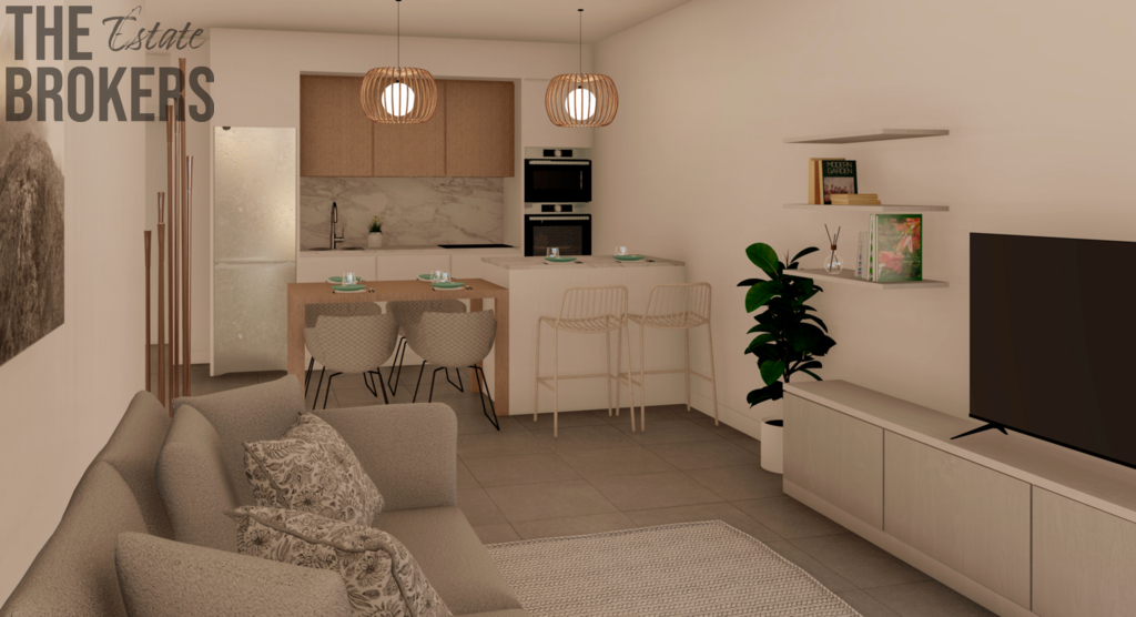 Vysoce kvalitní provedení: Nemovitosti jsou postaveny ze železobetonové konstrukce a fasáda je kombinací jednovrstvé malty a obkladu z porcelánové kameniny. Interiéry mají prvotřídní podlahy z šedé porcelánové kameniny a stěny s hladkým bílým nátěrem.
