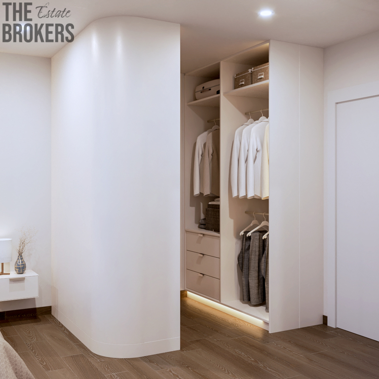 Tři ložnice a tři plně vybavené koupelny. Koupelny zahrnují moderní umyvadlovou skříňku s umyvadlem, zrcadlem, vestavěným LED osvětlením, sprchovou vaničku v úrovni podlahy a termostatickou sprchovou baterii.