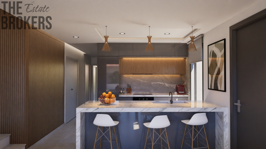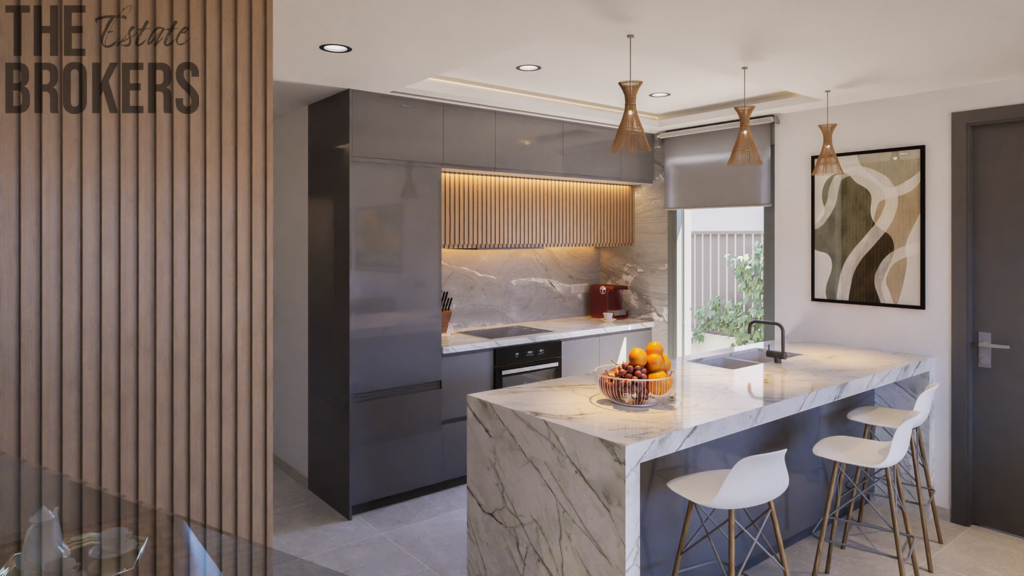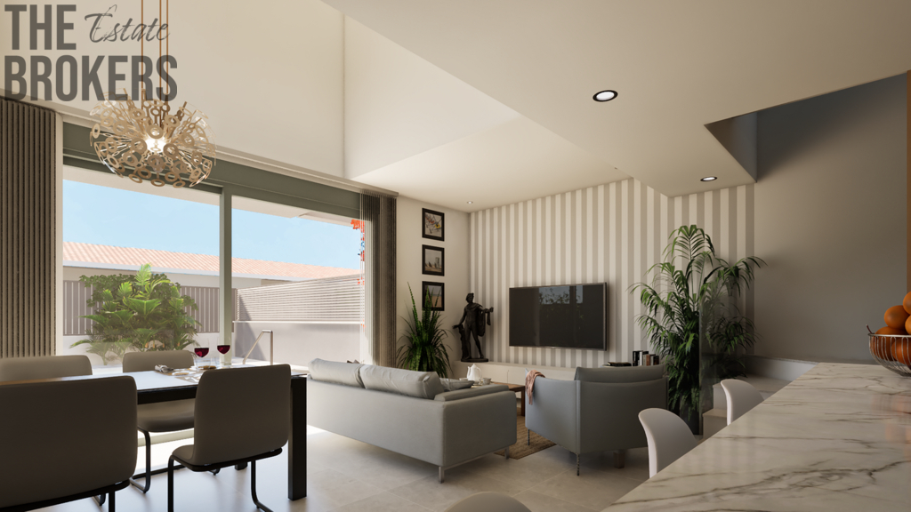 Každá vila má moderní, otevřený koncept rozložený do dvou podlaží a disponuje 3 ložnicemi a 3 koupelnami. Nemovitosti nabízí plně vybavenou kuchyň s ostrůvkem a prostorný obývací a jídelní pokoj. Z domu se dostanete do své soukromé zahrady o rozloze 71 m², na velkou terasu nebo na nádherné solárium s letní kuchyní.