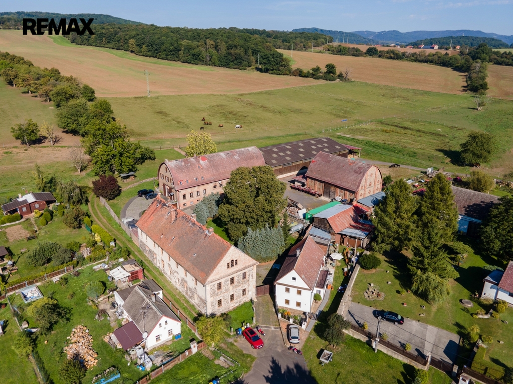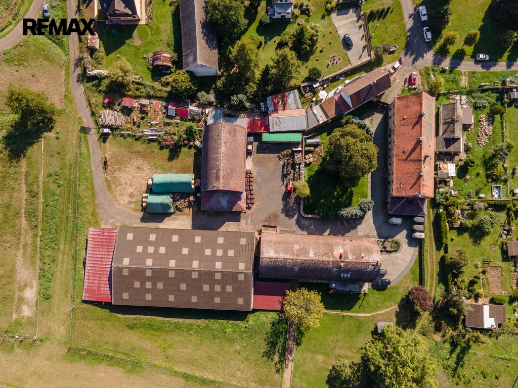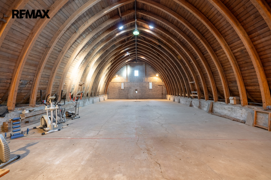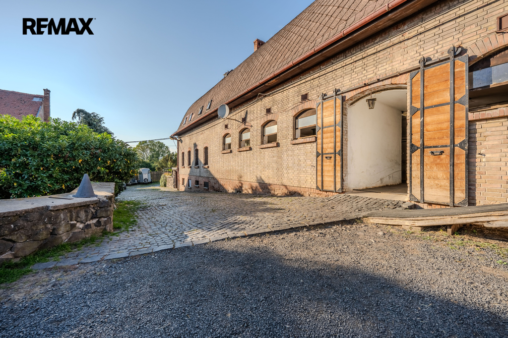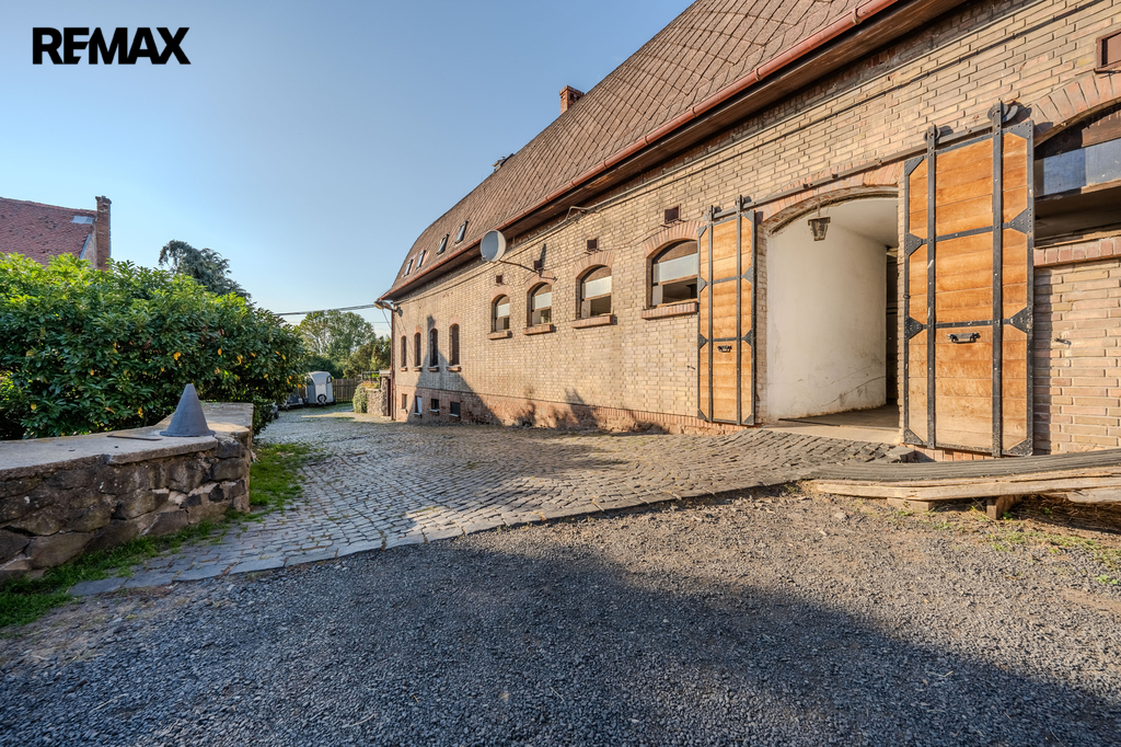 Další budova slouží jako prostorné stáje s kapacitou pro více než čtyřicet koní. Zázemí je plně funkční a uzpůsobené pro každodenní provoz s důrazem na pohodlí zvířat i efektivitu práce. U vstupu do areálu se nachází třetí objekt určený k rekonstrukci, který nabízí možnost vybudovat apartmány pro hosty či ubytování pro personál.