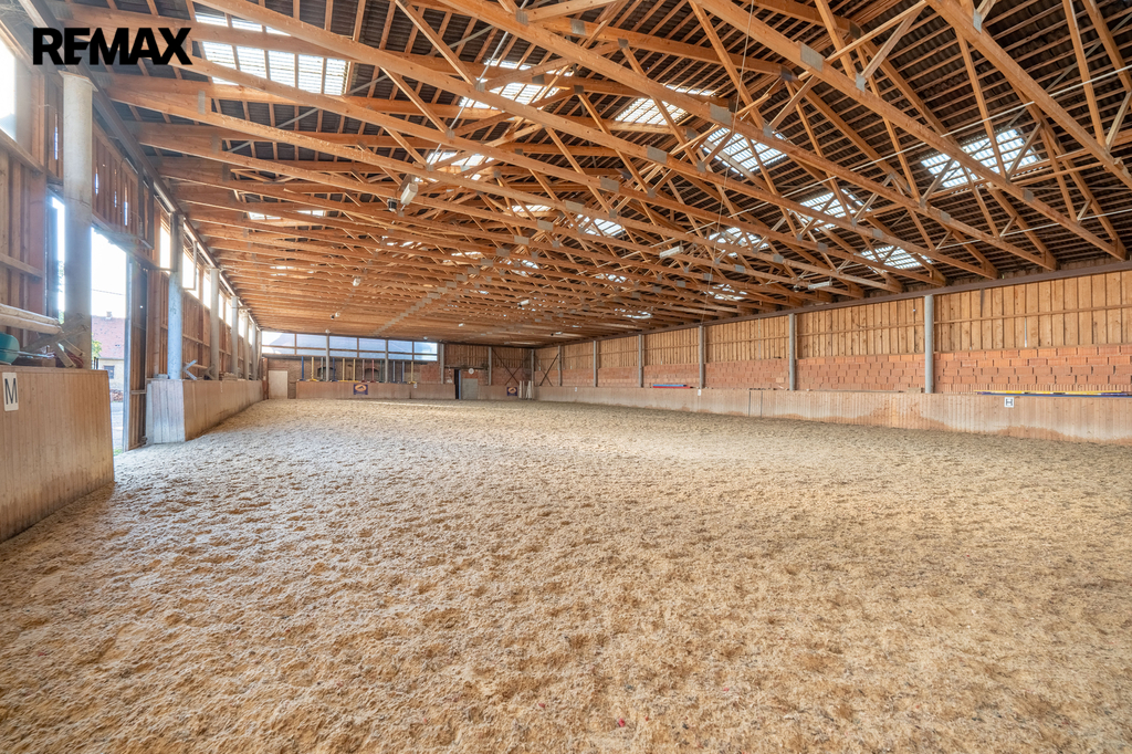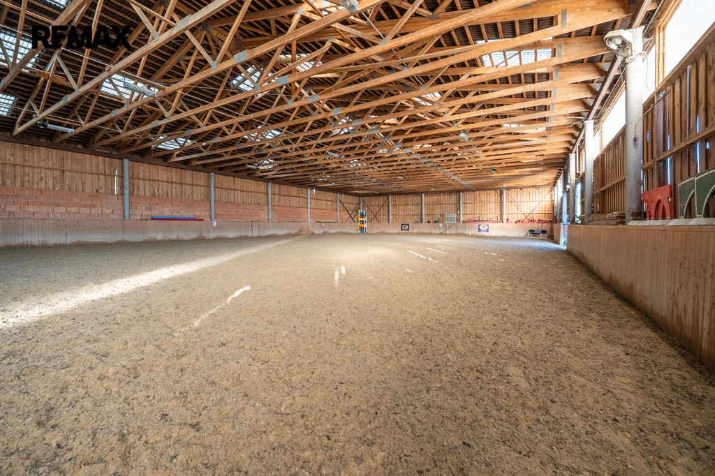 Dominantou celého areálu je velká krytá jízdárna, která umožňuje celoroční provoz bez ohledu na počasí. Díky své velikosti a technickému řešení je ideální pro trénink, jezdecké soutěže či rekreační jízdu.