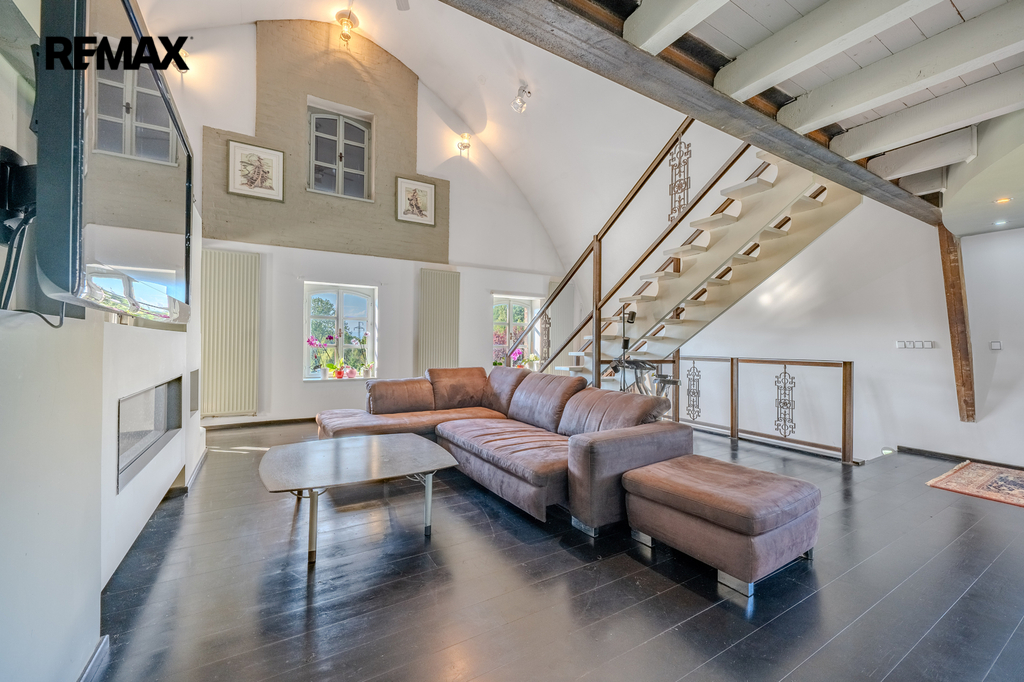 Hlavní budova slouží jako luxusní mezonetový byt s přímým vstupem na zahradu a do stájí. Byt je velmi prostorný, moderně řešený a rozkládá se ve třech podlažích. Současná dispozice umožňuje další rozšíření obytné části podle individuálních potřeb nového majitele. Navíc je zde k dispozici samostatná obytná jednotka, která může sloužit jako pokoj pro hosty či zázemí pro rodinu.