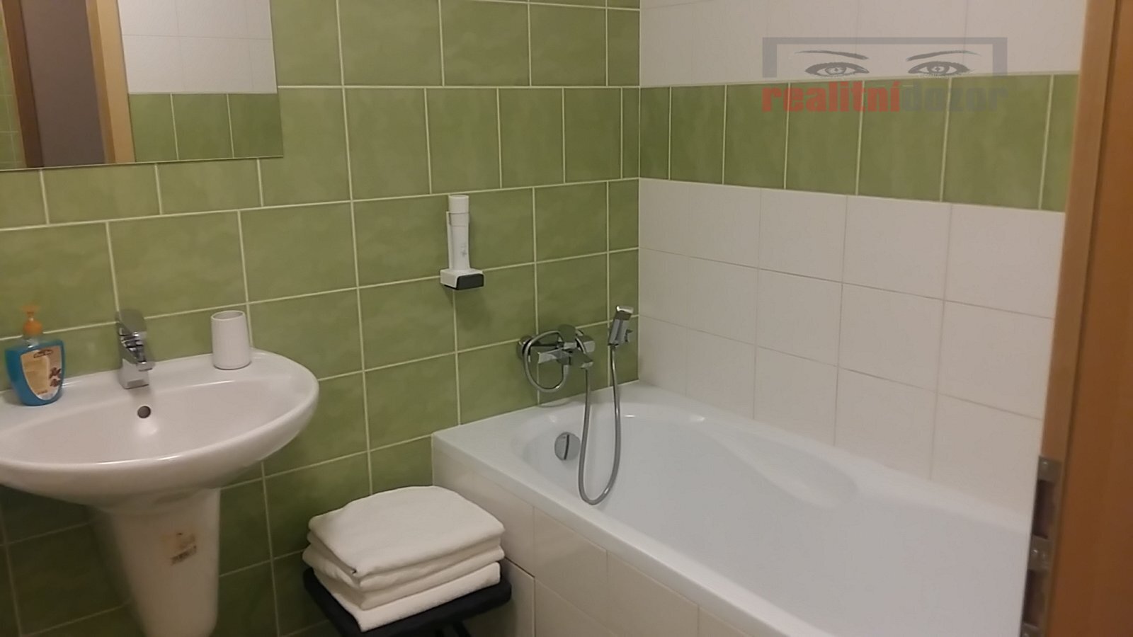 - z chodby je také vstup do koupelny - ta je vybavena vanou, umyvadlem, WC a topným žebříkem.