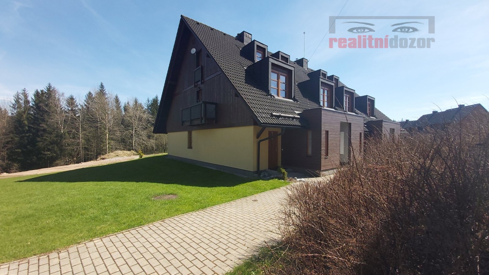 K bytové jednotce náleží podíl na společném pozemku kolem domu o celkové výměře 4281 m2 a také podíl na příjezdové cestě o celk. výměře 2421 m2. Dům se nachází v sousedství hotelu, kde je možné navštěvovat restauraci a wellness (bazén, vířivka, posilovna, sauna) v okolí najdete krásnou přírodu. Byt tak využijete k odpočinku na horách nebo pro sportovní vyžití vzhledem k cyklotrasám, turistice, lyžování ve Ski centru Říčky apod. nebo jej využijete jako investici ke komerčnímu pronájmu/ubytování. V případě pronájmu na ubytování je možné využití servisu v místě.