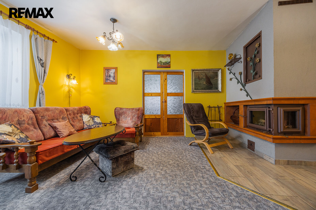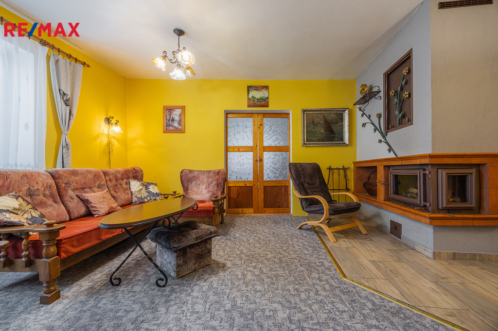 Dům prošel rekonstrukcí ve více etapách — má novou střechu, plastová okna a obytná část je zateplena.