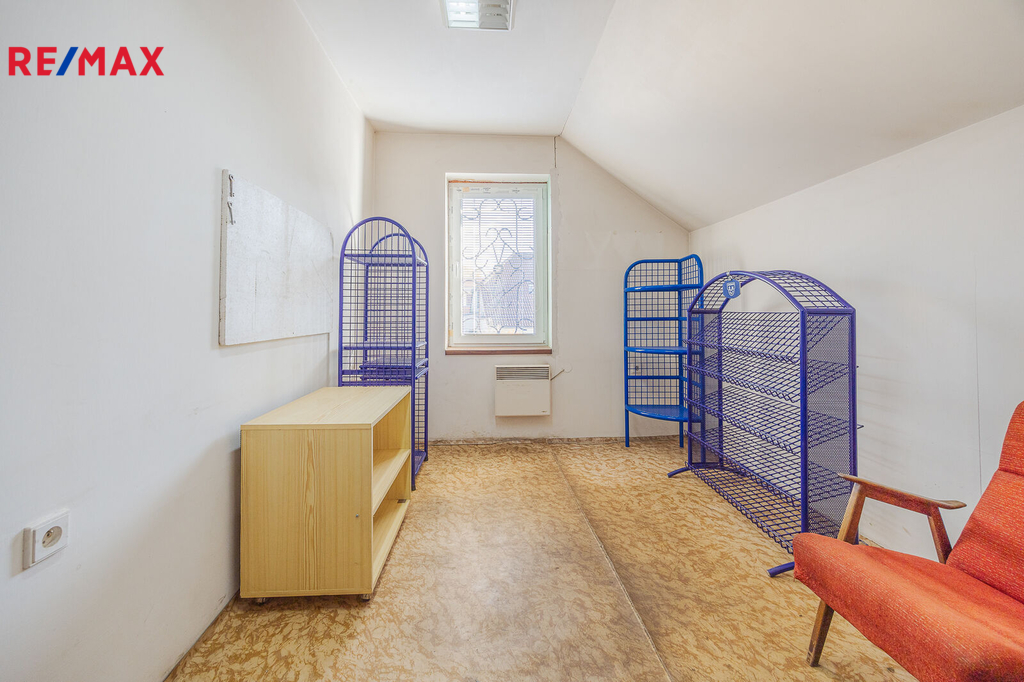 Nad dílnou se nachází kancelář, šatna a sociální zařízení o cca 40 m², ideální pro každého, kdo chce mít podnikání blízko, ale přitom oddělené od bydlení.