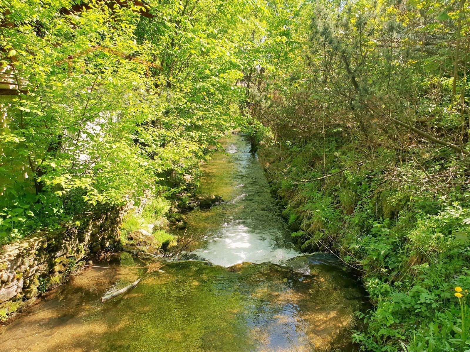 Pozemky: celková výměra 2 452 m². Přestože je objekt u hlavní komunikace a v zastavěné části obce, nabízí i klidné posezení s pergolou ve dvorní části a lesní pozemek přístupný přes lávku nad potokem. Velkou výhodou je zastávka skibusu v sousedství.