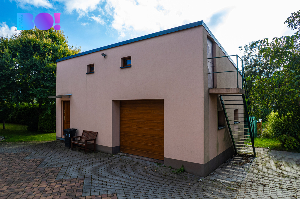 Garáž s možností skladovacích prostor v podkroví a další rozsáhlá budova, která nabízí skutečně široké spektrum využití – může sloužit jako další bytová jednotka, skladovací prostor nebo díky své velikosti i pro komerční účely (např. menší provozovna, dílna, kanceláře, showroom apod.).