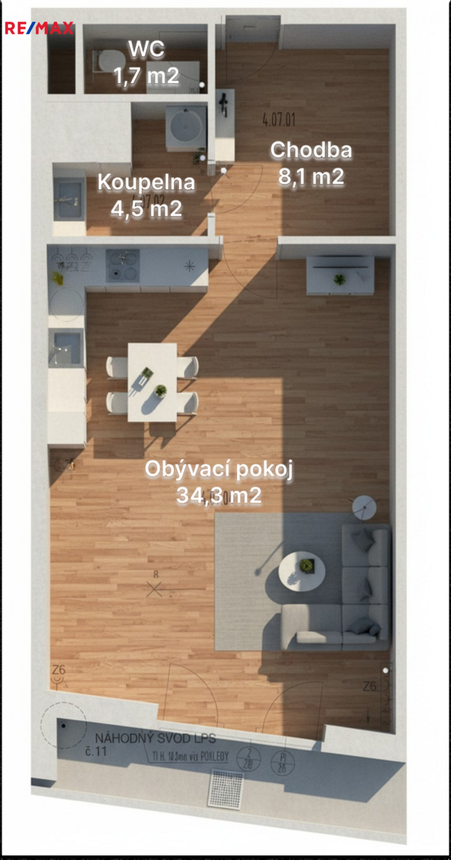 | Dispozice/podlahová plocha: | 1+kk/50 m² |
