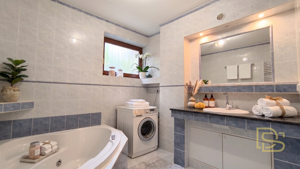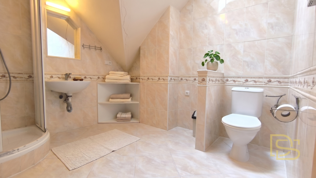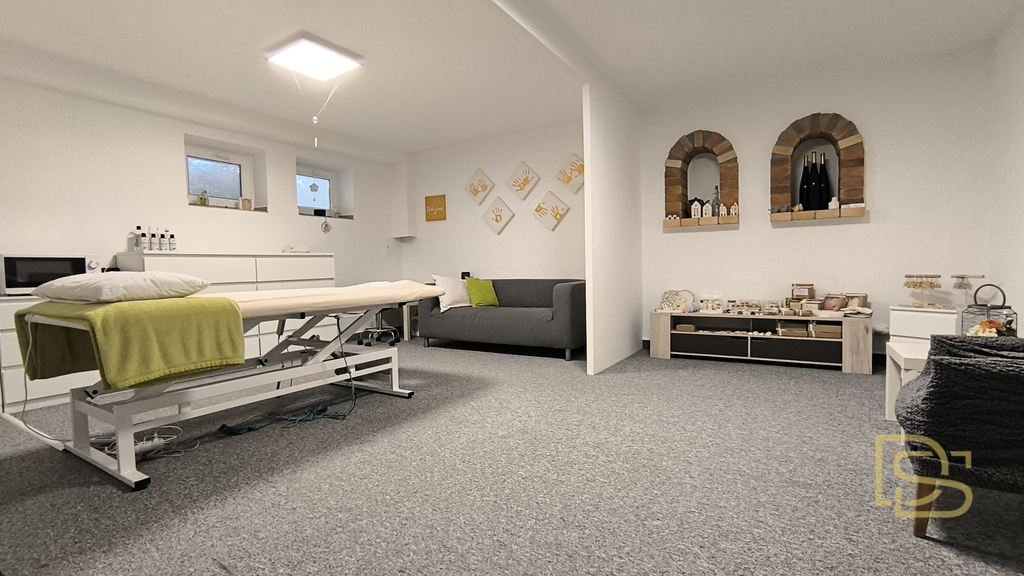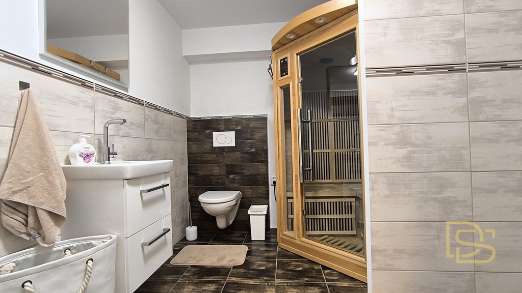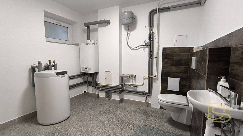 • Suterén: prostor pro vlastní podnikání (kolaudované prostory pro masážní služby), dále koupelna se sprchovým koutem, toaletou a infra saunou a technická místnost s plynovým kotlem a bojlerem pro ohřev vody.