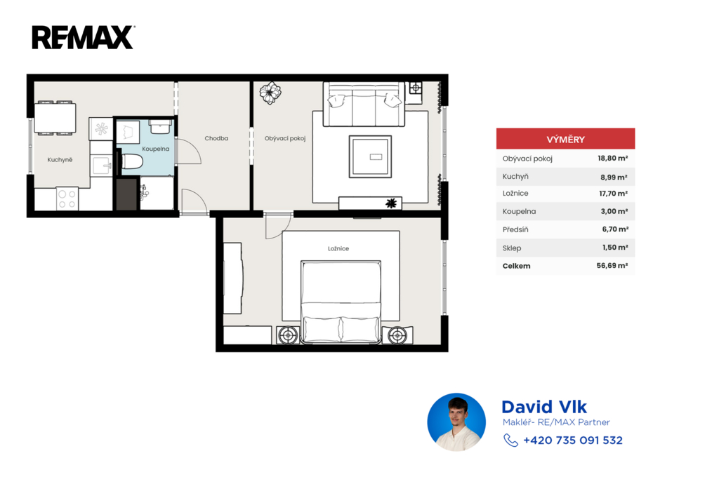 Dispozičně jde o klasický a dobře využitelný byt 2+1, který dává smysl jak pro vlastní bydlení, tak i jako startovací byt pro pár nebo menší rodinu. Byt je po rekonstrukci, bez vybavení, takže nový majitel má prostor doladit si interiér přesně podle svého stylu, ale zároveň nemusí řešit větší vstupní investice do základního stavu nemovitosti.