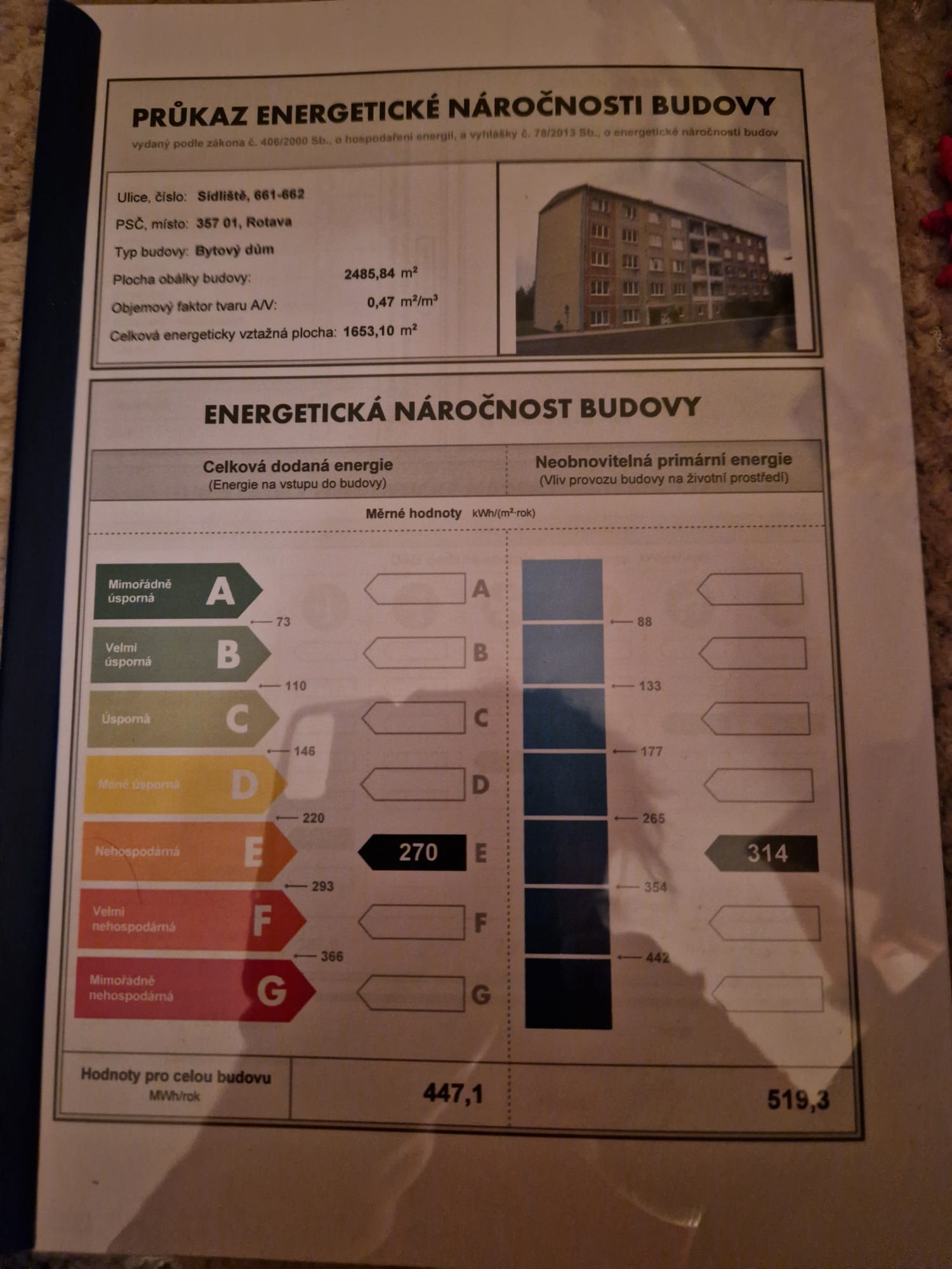 - Energetická náročnost budovy: E - Nehospodárná
