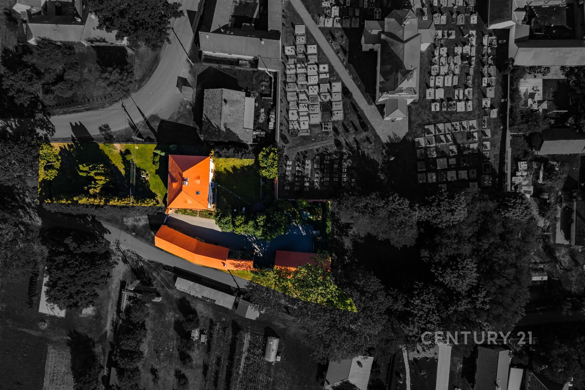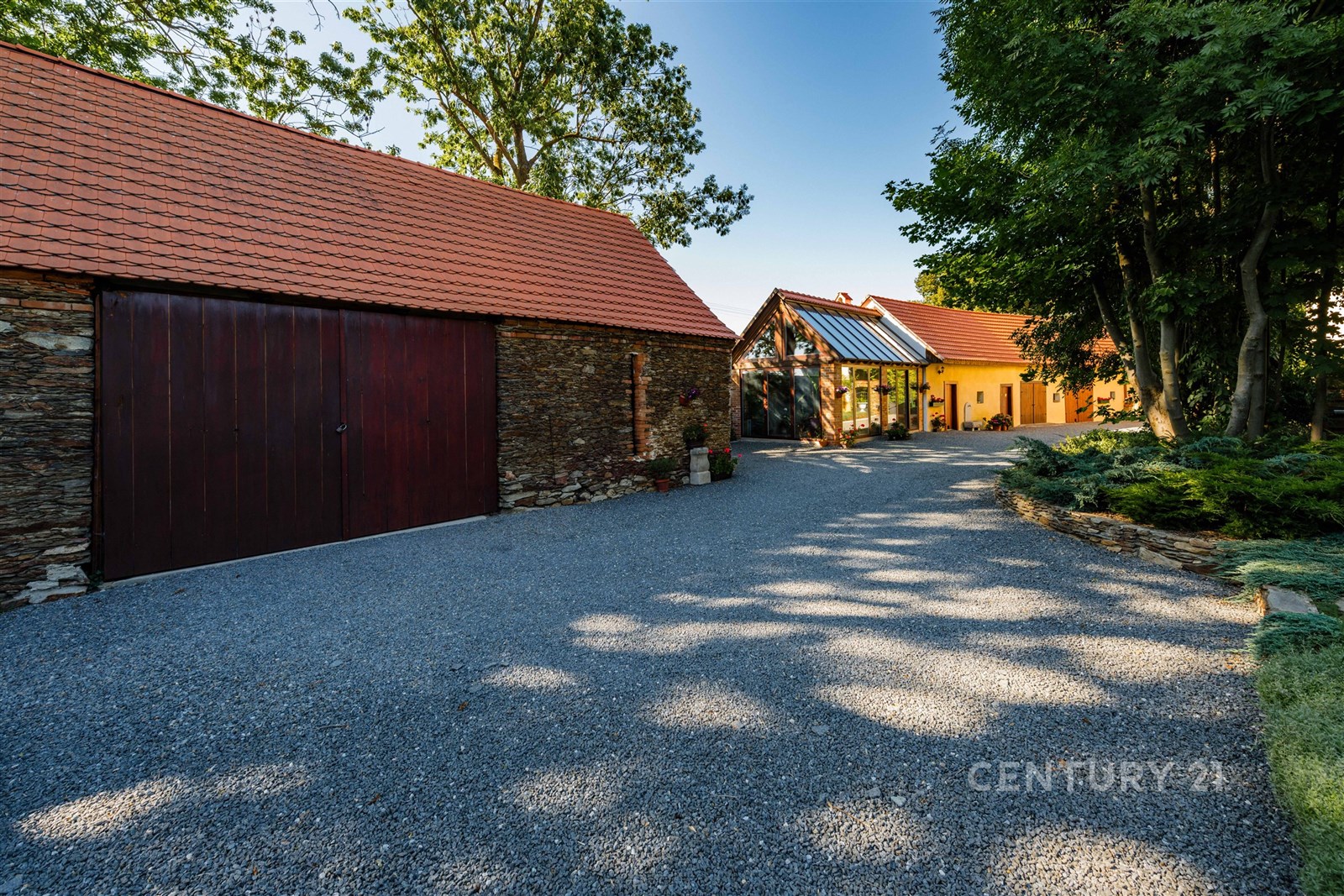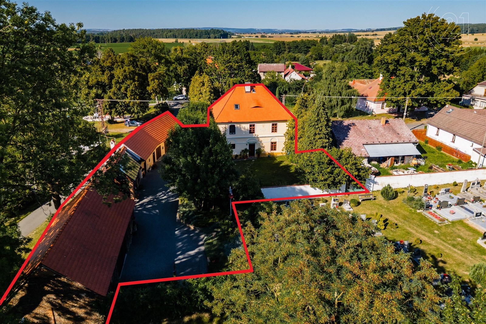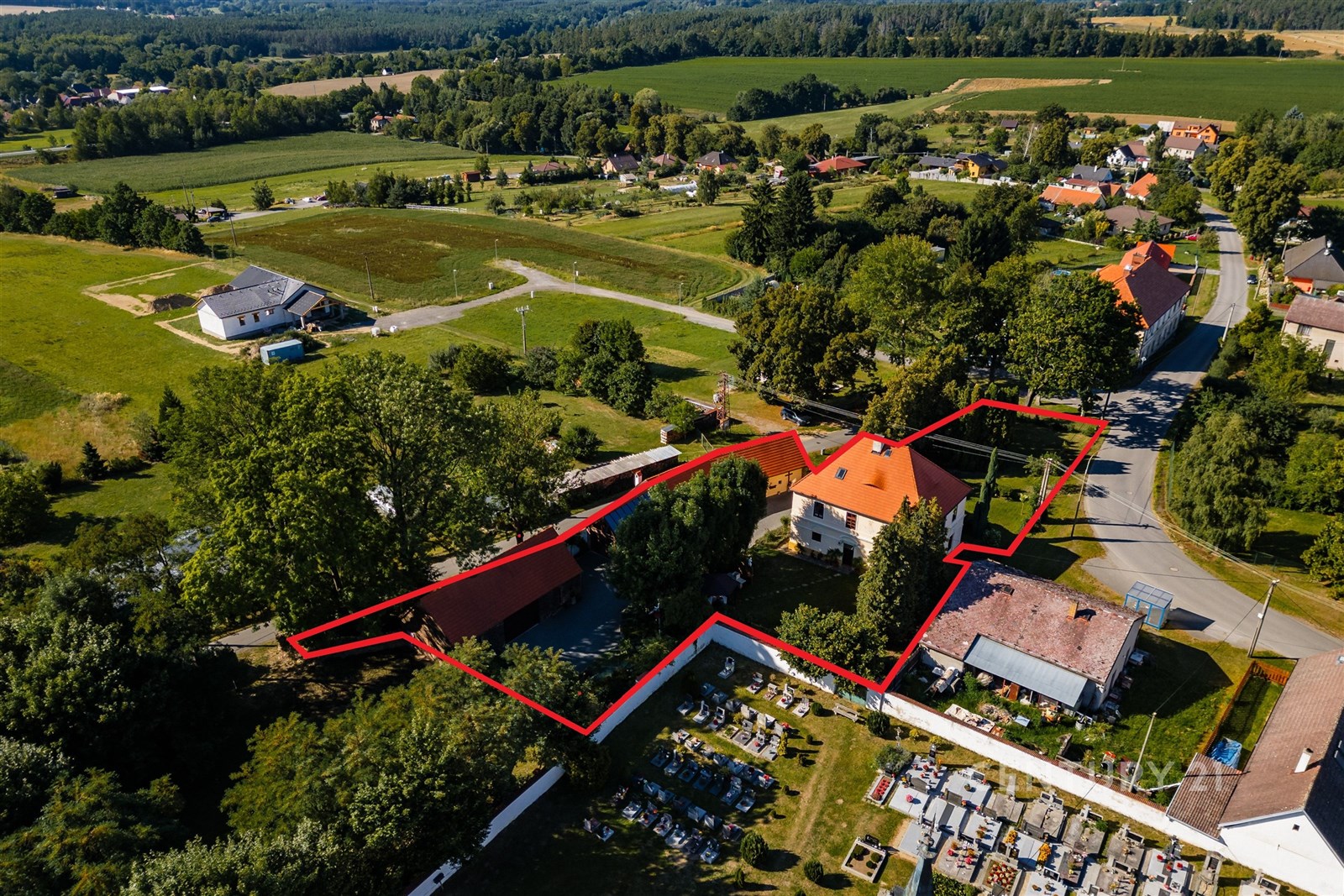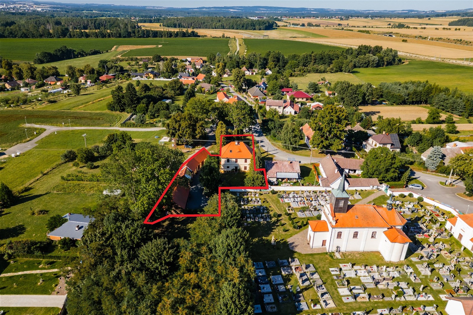 Usedlost, o celkové výměře pozemků 2031 m², tvoří tři stavby, které vytvářejí polouzavřený dvůr, kde část slouží jako zatravněná okrasná zahrada se zákoutím s altánkem a venkovním krbem, pro klidné posezení s rodinou nebo přáteli, druhá část je vysypána kamínkem, aby byl přístup i příjezd pohodlný. Hlavní patrový dům se zastavěnou plochou 132 m² a s obytným podkrovím je určen k trvalému bydlení a nabízí dva samostatné vstupy, které zajišťují flexibilitu a soukromí. Vedlejší přízemní stavba má zastavěnou plochu 110 m² a slouží jako dílna a kůlna, ke které byla nově přistavěna zimní zahrada, místo, kde lze vychutnat slunečné dny i v chladnějších měsících, s výhledem do zahrady a pocitem, že jste stále propojeni s přírodou. Třetí stavbou (zastavěná plocha 115 m²) je průjezdná garáž, do které se pohodlně vejdou tři automobily. K nemovitosti dále náleží pozemek před domem s původní kopanou studnou s užitkovou vodou.
