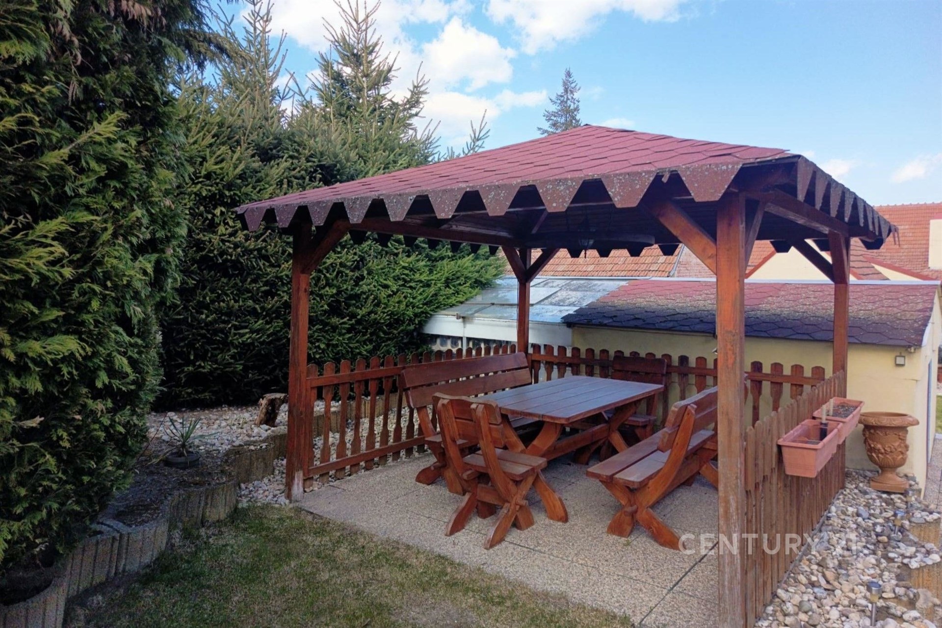 • Plnohodnotné relaxační zázemí infračervená sauna, 2x krb, udírna, pec na pizzu, 2x kryté venkovní posezení, solární sprcha