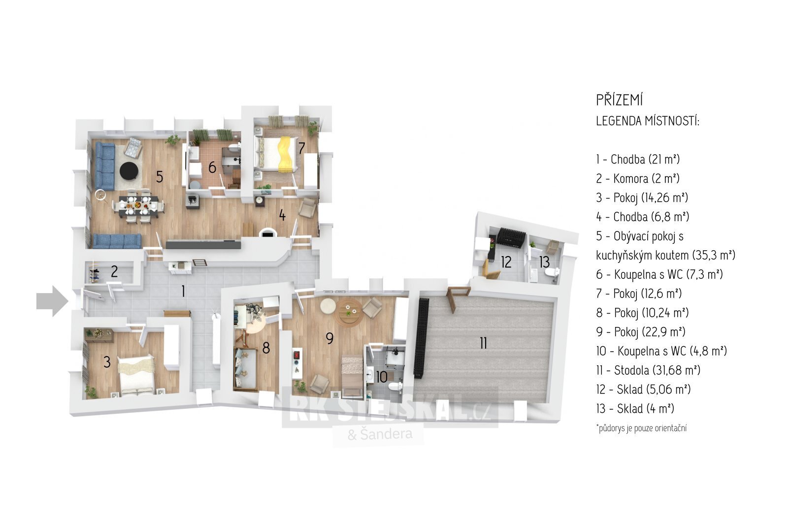 Nemovitost nabízí široké spektrum využití: od stabilního výnosu z krátkodobých pronájmů, přes kombinaci vlastního bydlení a podnikání, až po vytvoření stylového penzionu.
