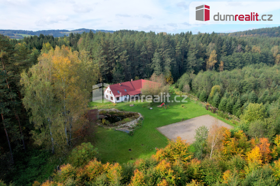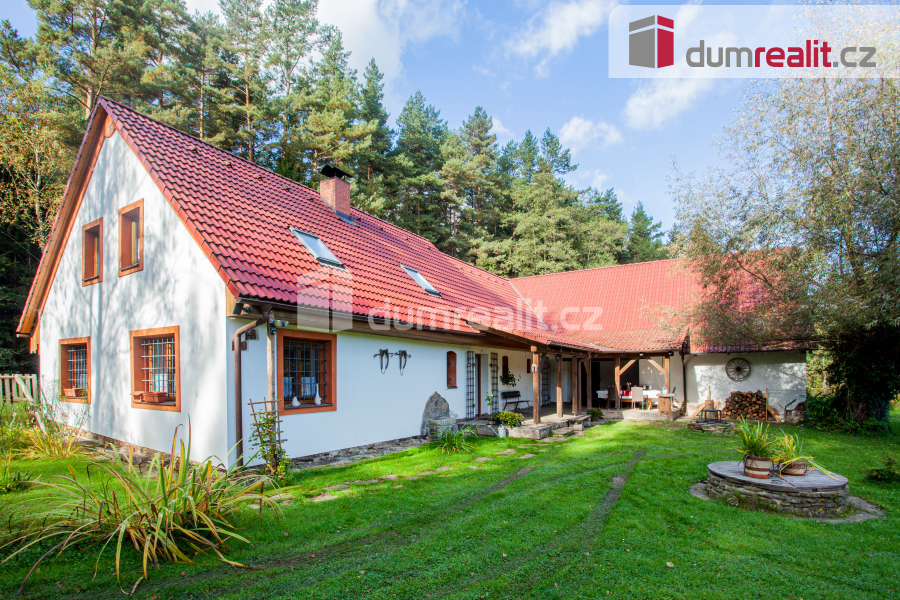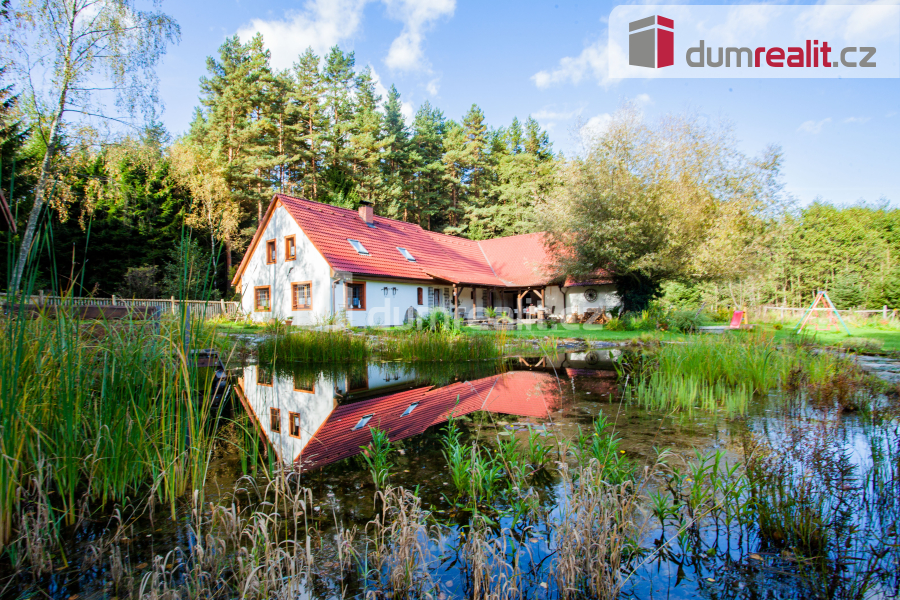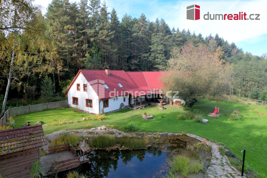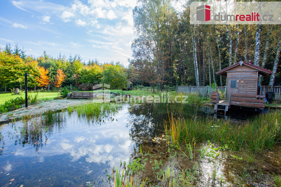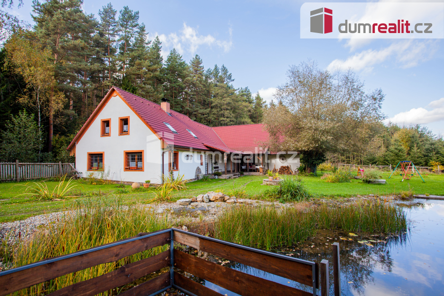 K prodeji, rodinný dům s pozemkem, saunou a rybníčkem, "Na samotě v lese", Hněvanov č.p. 11, Rožmitá