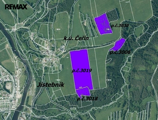Jedná se o soubor čtyř pozemků o celkové výměře 72 095 m2 v k.ú. Čeřín spadající pod obec Rožmitál na Šumavě, okres Český Krumlov