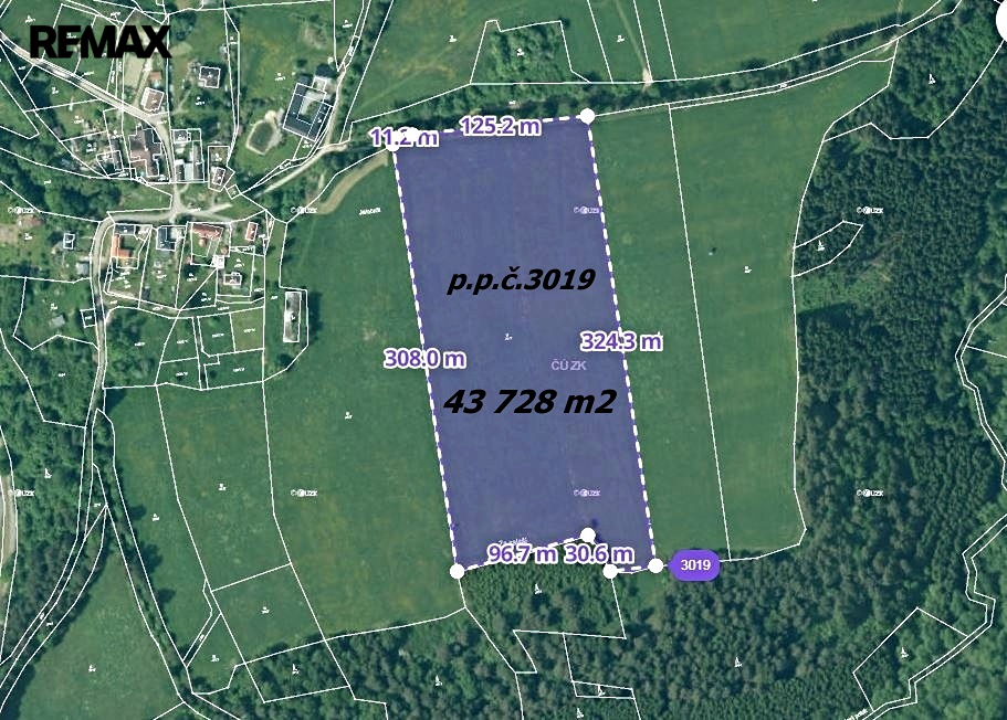 - pozemek parc. č. 3019 o evidované výměře 43728 m2, trvalý travní porost