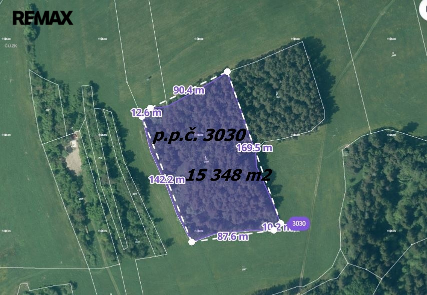 - pozemek parc. č. 3030 o evidované výměře 15348 m2, lesní pozemek