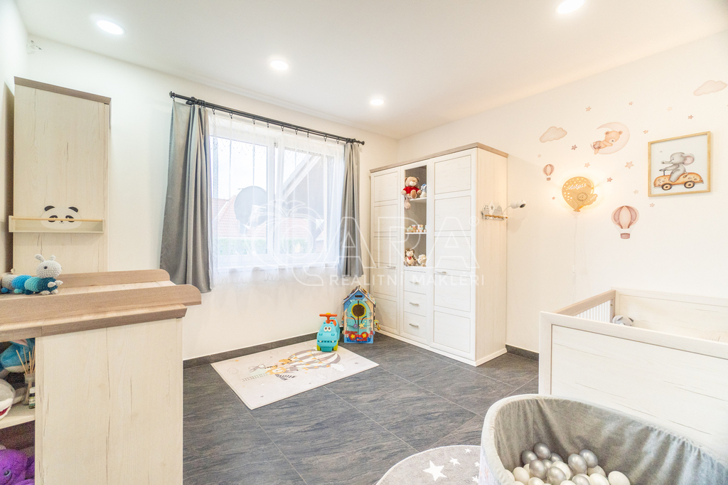 Tento dům vyniká svou velkorysou dispozicí 7+kk, která nabízí dostatek prostoru i soukromí pro každého člena rodiny. Dominantou je prostorný obývací pokoj s kuchyňským koutem, na který navazují další místnosti, a to ložnice, dětský pokoj, 2x pokoj pro hosty, dvě pracovny, šatna, technická místnost, koupelna a samostatné WC. Více naleznete v přiložené 3D prohlídce. Díky nadstandardní výšce dveří působí celý interiér ještě vzdušnějším a elegantnějším dojmem.
