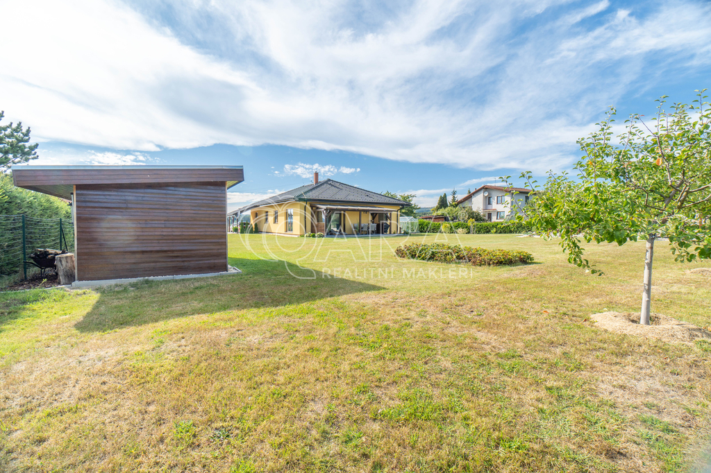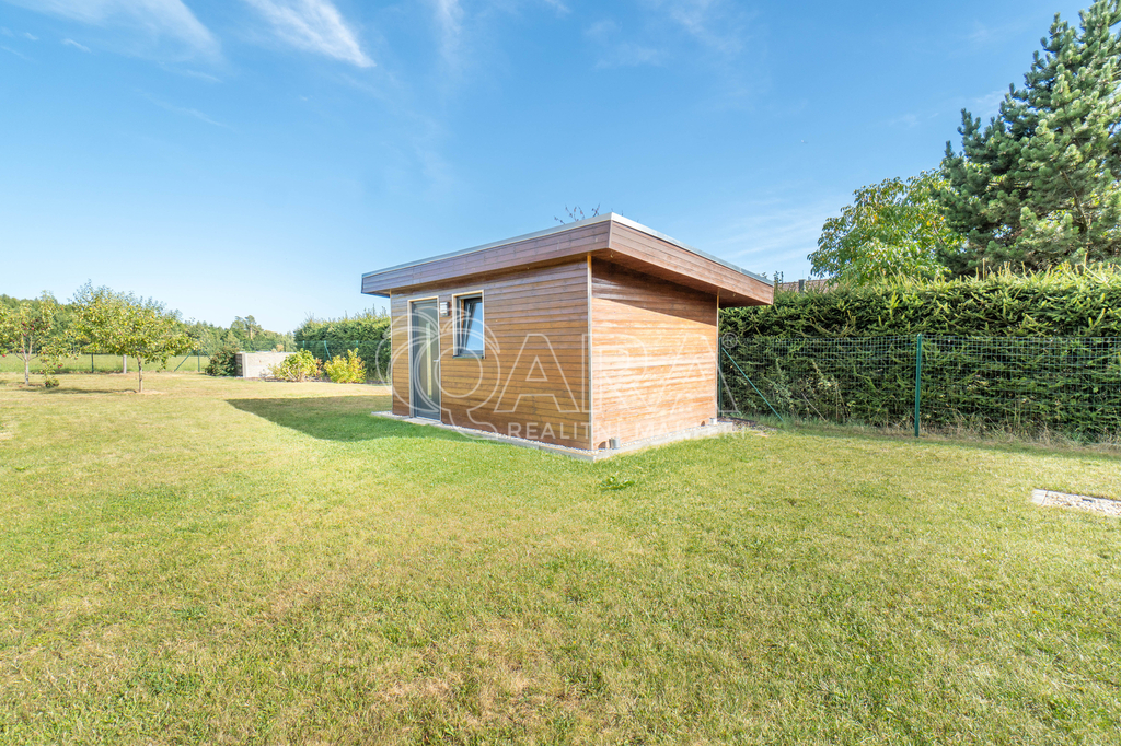 Pozemek o více než dvou tisících metrech čtverečních je rovinatý, maximálně využitelný a rozčleněný do několika částí tak, aby každý našel své místo pro odpočinek, zábavu či práci na zahradě. Nachází se zde také 2x zahradní domek, vyvýšené záhony na pěstování zeleniny, sad s ovocnými stromy a kvalitní skleněný skleník.