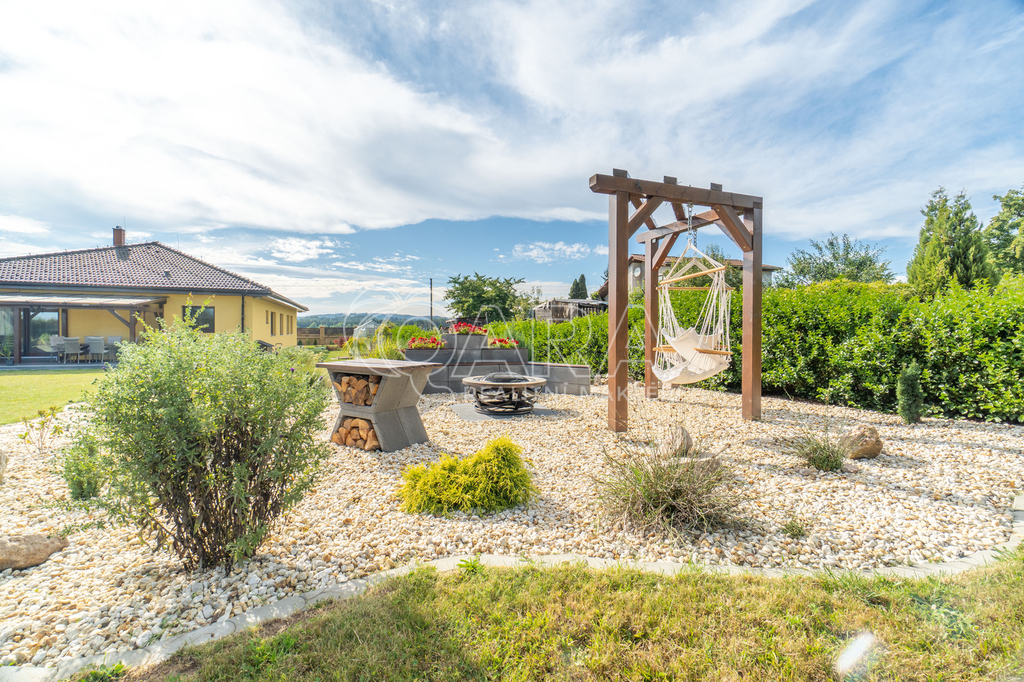 Okolní krajina je doslova stvořená k odpočinku i aktivnímu trávení volného času – ze zahrady i z domu se vám otevírají neopakovatelné výhledy, čekají vás nekonečné procházky, výlety na kole či chvíle klidu v naprostém soukromí vlastního domova.